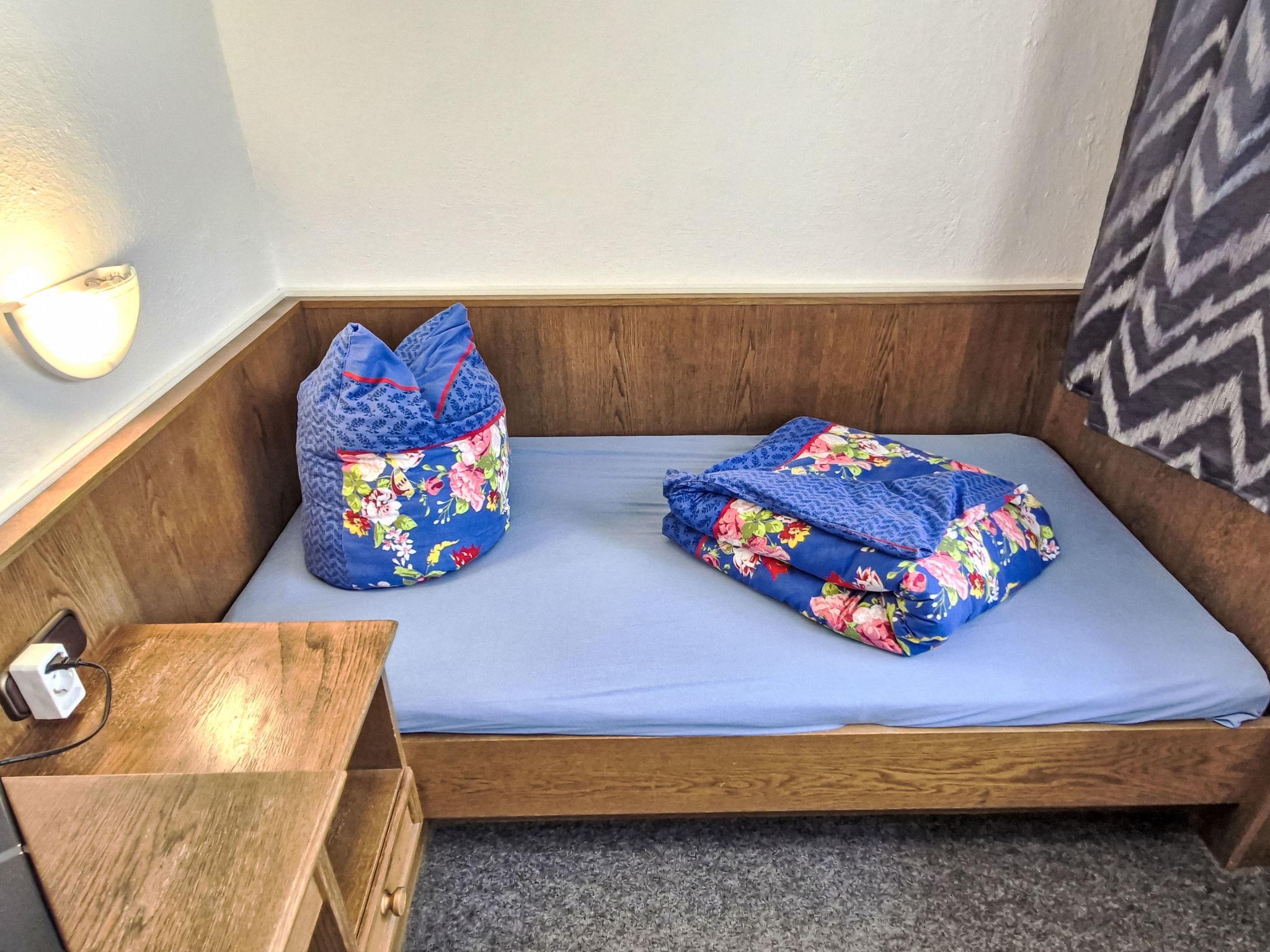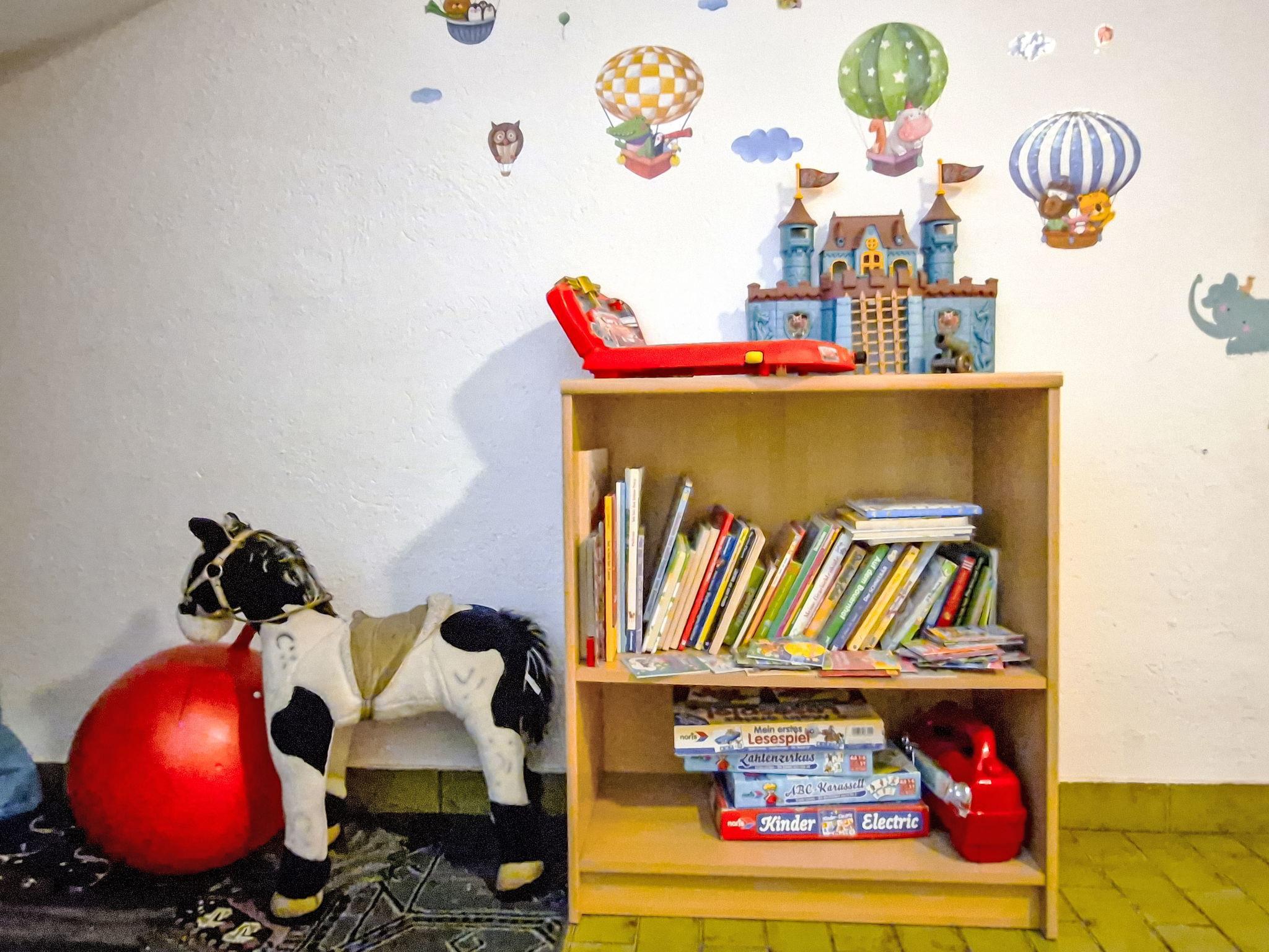 "Max", 6-room apartment 130 m2 on 3 levels. Spacious, practical furnishings: kitchen (oven, dishwasher, 4 ceramic glass hob hotplates, toaster, kettle, microwave, freezer, electric coffee machine) with dining table and dining nook. On the lower ground floor: living/dining room with dining table. Upper floor: 1 room with 1 bed, shower/WC and satellite TV. 1 room with 1 bed, shower/WC and satellite TV. Exit to the balcony. 2 rooms, each room with 1 double bed, shower/WC and satellite TV. Exit to the balcony. 1 room with 1 bed, 1 double bed, shower/WC and satellite TV. Exit to the balcony. Oil heating. Carpet. Balcony. Balcony furniture. Facilities: children's high chair, baby cot. Internet (WiFi, free). Parking (3 cars). Please note: non-smokers only. Maximum 1 pet/ dog allowed. No internal connecting door between the floors.