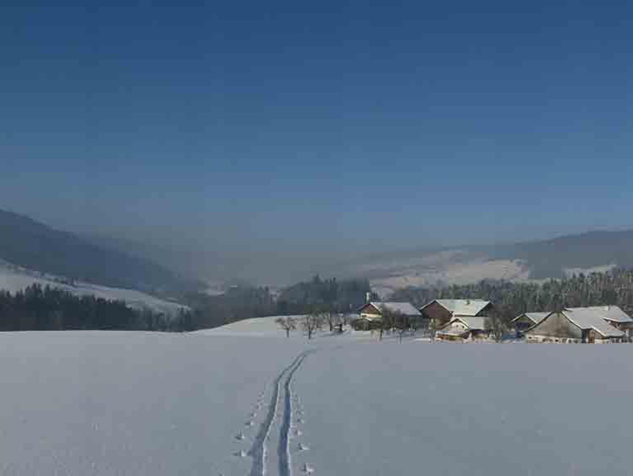 Unsere Ferienwohnung Magerite wurde 2013 neu renoviert und im gleichen Jahr in Betrieb genommen. Sie befindet sich im 1. Stock unseres Bauernhauses (Nord-Ost gelegen) und ist über einen eigenen Aufgang erreichbar.