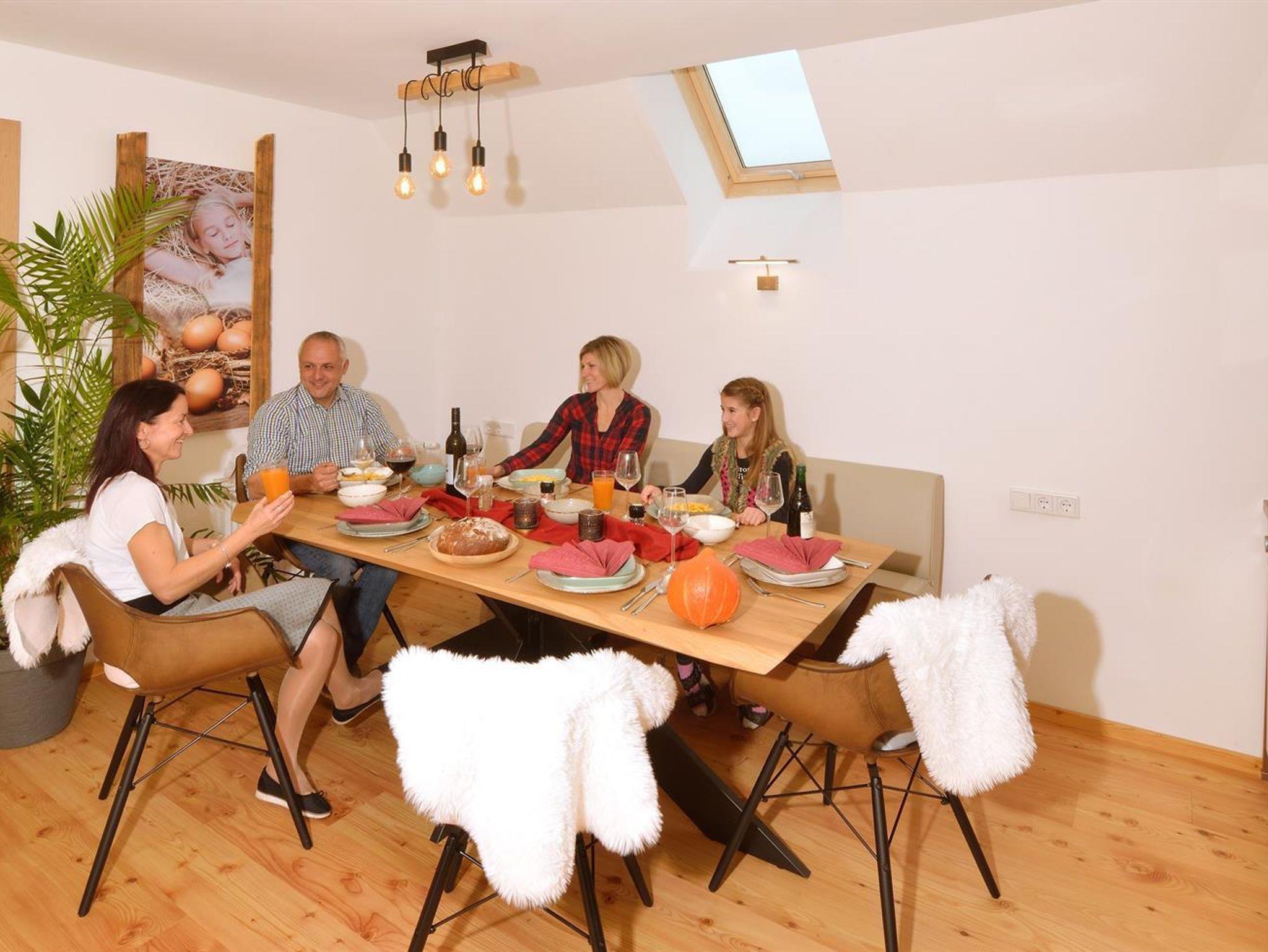Im 14. Jahrhundert erbaut, 1858 nach einem Brand neu errichtet, 2013 komplett umfunktioniert - für unsere Gäste. Traditionell urig mit modernen Elementen – so eröffnet sich dem Gast unser neu ausgebauter Stall. Wir wollen Ihnen ein Urlaubsgefühl der besonderen Art vermitteln. Das alte Gebälk, die Schnitzereien an den Wänden, der offene Bereich auf den Heuboden und diese einzigartige Atmosphäre werden Sie verzaubern. Lassen Sie sich inspirieren, und entspannen Sie in den großzügig angelegten Appartements „Landlust“ und „Schwalbennest“ oder in den beiden Komfortzimmern im modernen Stil. In unserem Bauernhaus haben wir im Jahr 2020 die Wohnungen an den Stil von unserem Stall angepasst und modernisiert. Sie haben nicht nur neue Namen erhalten, sondern es wurden auch in zwei Wohnungen jeweils eine Infrarotkabine eingebaut.