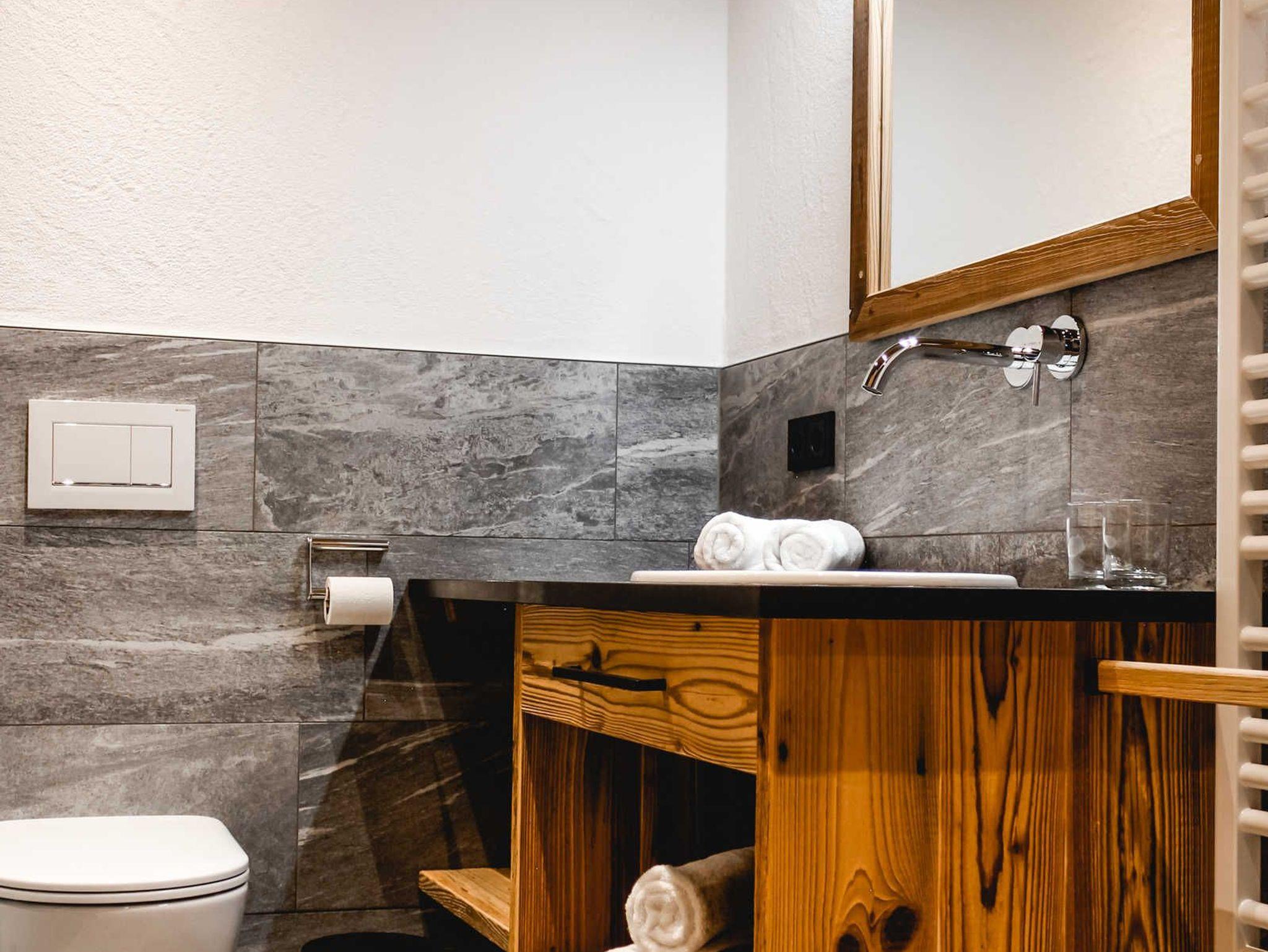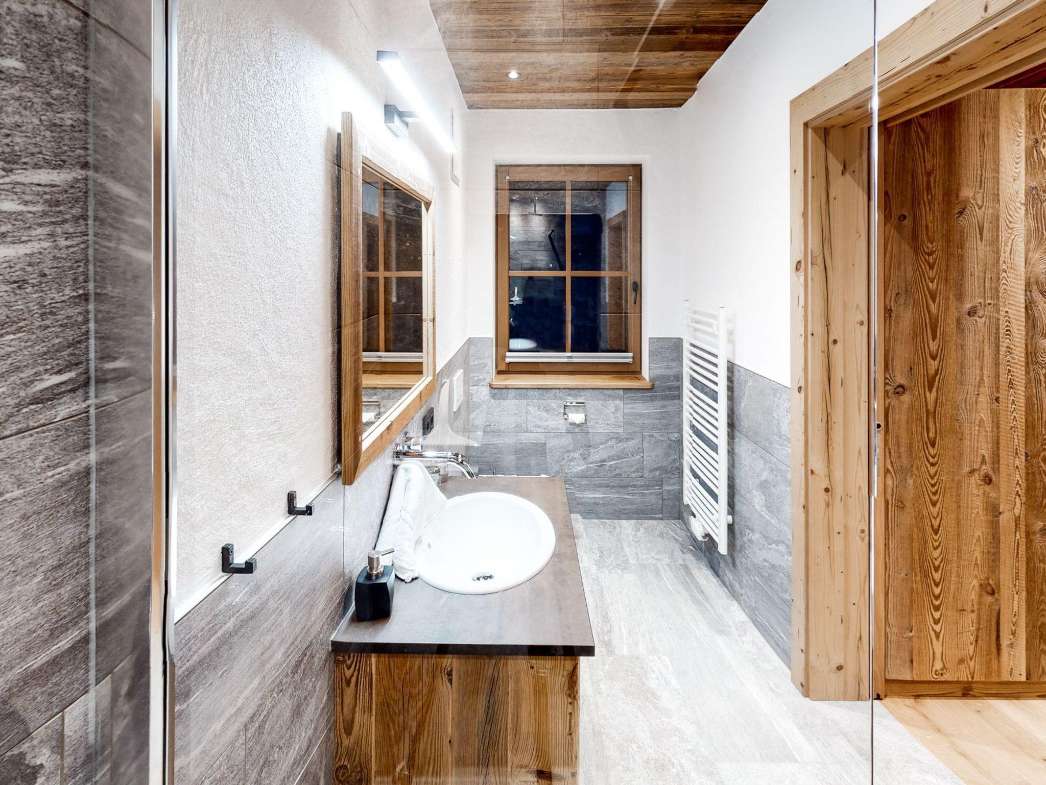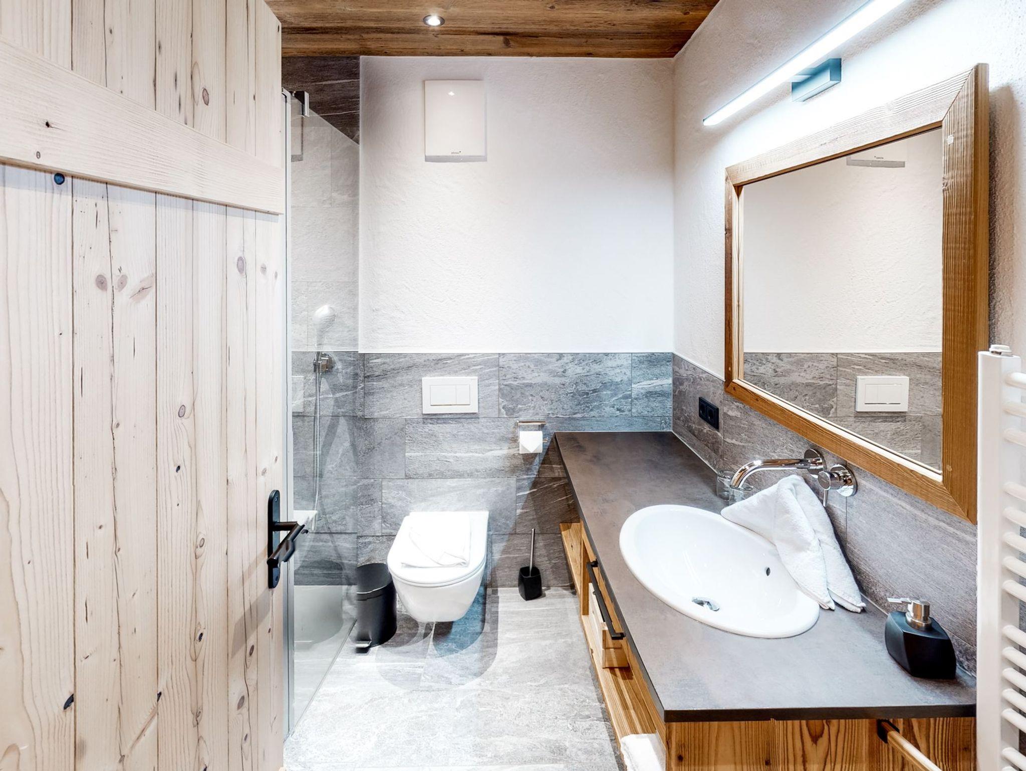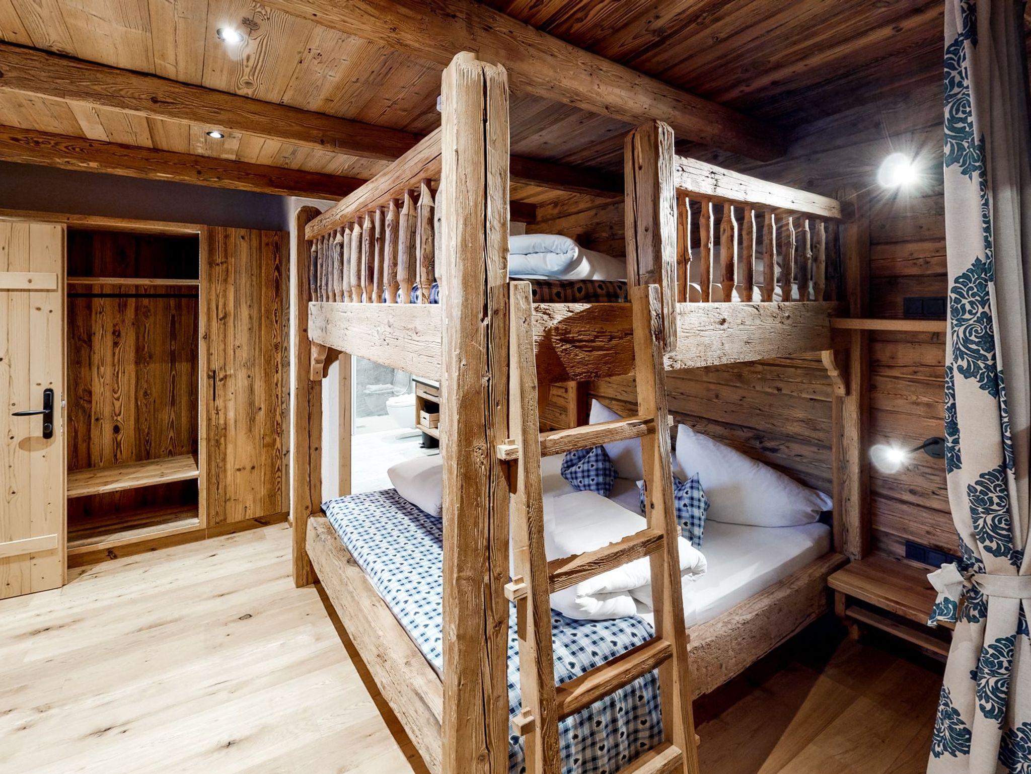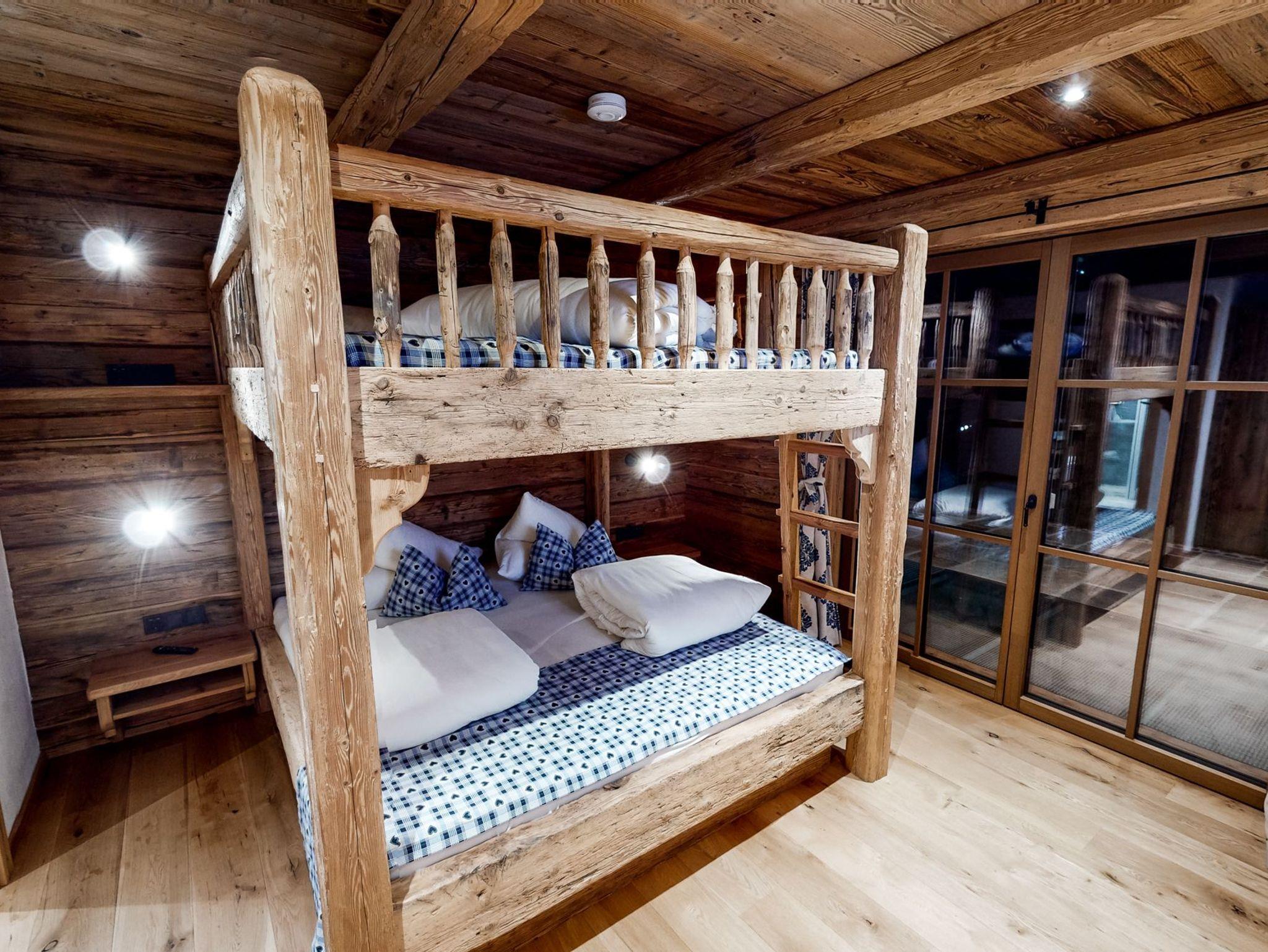 Das urige Appartement verfügt über drei Badezimmer, zwei Schlafzimmer und eine Wohnstube inklusive Küche und Ausziehcouch. Im größeren Schlafzimmer findet man neben den großen Fensterflächen und den rustikalen Antikmöbeln ein Altholz-Doppelstockbett. Das Berghütten-Ambiente ist komplett durchgängig … … in den Zimmern befinden sich Smart-TVs, sodass man nicht nur über die Wettersituation im Skigebiet stets im Bilde ist.