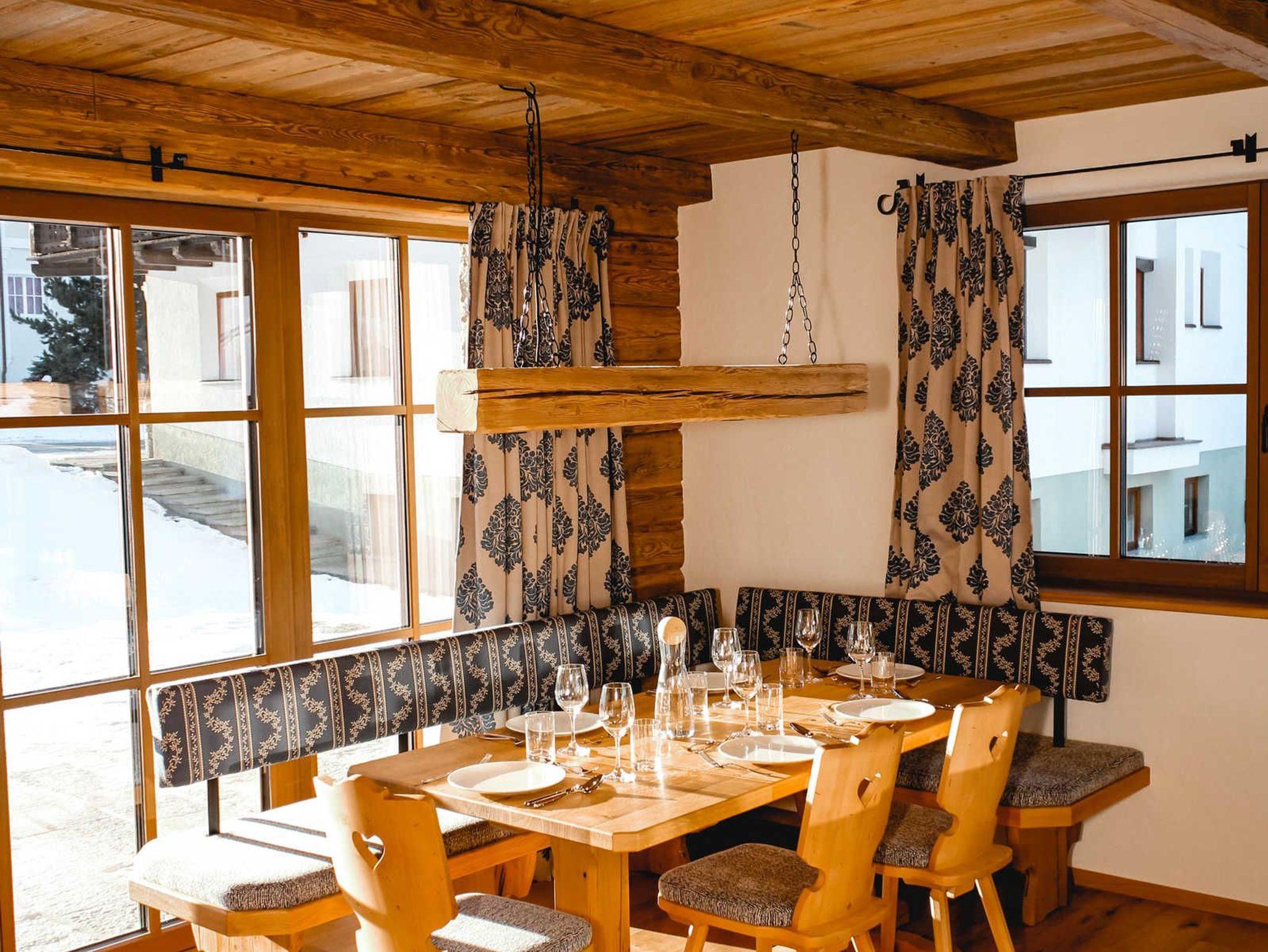 Die Terrasse mit bestem Blick auf die Vesulspitze und den Rauen Kopf wird ab Mitte März von der Abendsonne geflutet, bevor diese sich dann abends hinter dem Verwall-Massiv verabschiedet. Rustikal und traditionell gestaltet, mit sehr viel Liebe zum Detail eignet sich die Berg Lodge Silvretta auch bestens für einen unvergesslichen Familienurlaub.
