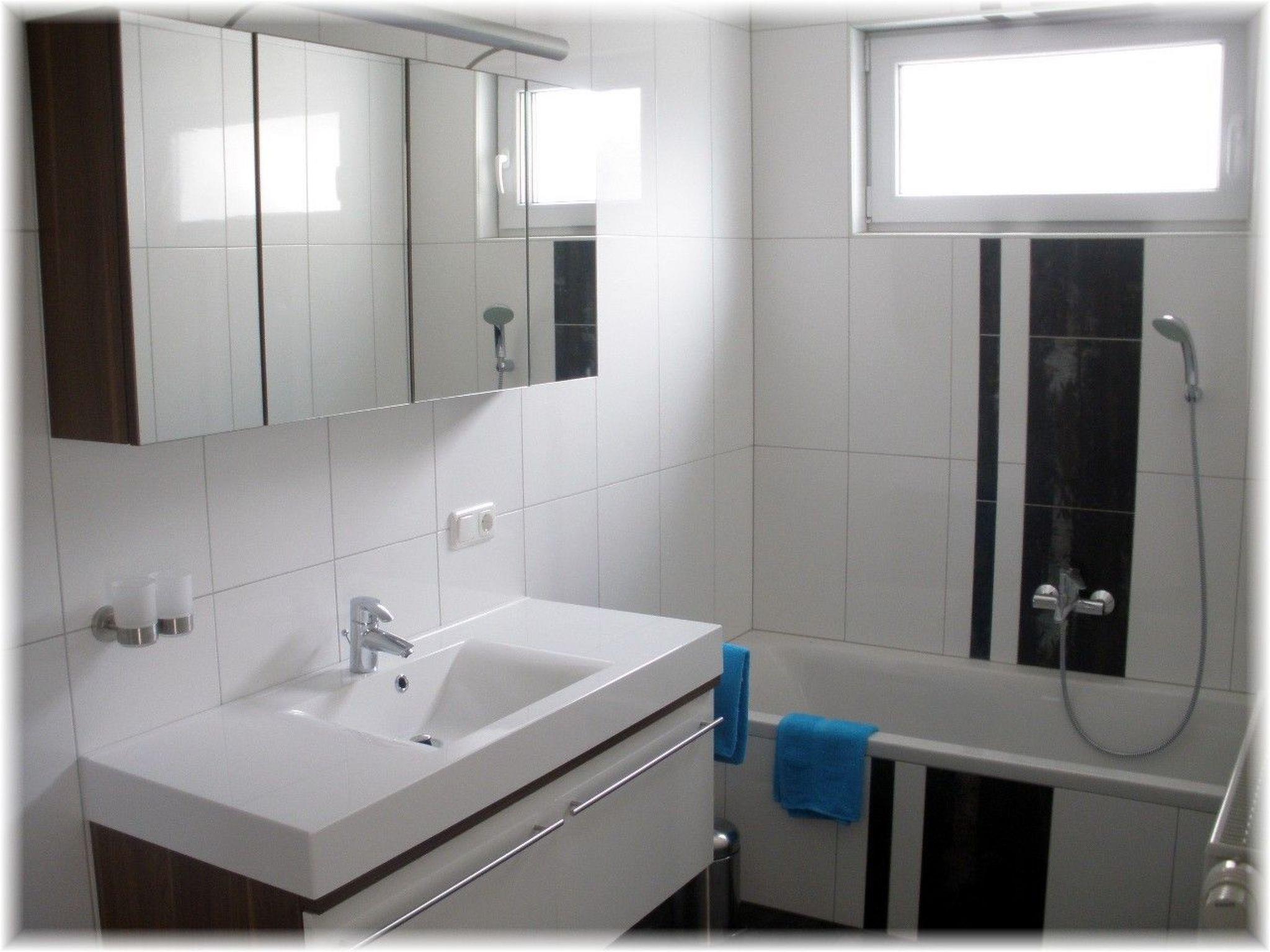 This light-flooded holiday flat offers you two bedrooms, a living room with dining and cooking area, a bathroom and a separate WC. The entire living area of 65 m² is pleasantly tempered by underfloor heating. In the first bedroom you sleep in a double bed measuring 180 cm x 200 cm, which is surrounded by two bedside tables on both sides. The second bedroom is furnished in the same way, but also has a single bed measuring 90 cm x 200 cm. Wardrobes for storing your travelling wardrobe are available in both rooms. The heart of the flat is the cosy living area with integrated kitchen-diner. After a day out, take a seat and relax on the leather sofa with récamiere. The flat-screen TV with satellite TV provides entertainment in the evening. The fully equipped kitchenette allows you to cook for yourself with a dishwasher, a fridge with freezer compartment, a four-zone ceramic hob with oven and the usual small electrical appliances such as a coffee machine, kettle, microwave and toaster. The dining table invites you to share a meal on the comfortable corner bench with two chairs. The daylight bathroom is equipped with a vanity unit with mirror cabinet, a towel dryer, a shower cubicle and a bathtub. There is also a wash hand basin in the separate WC.