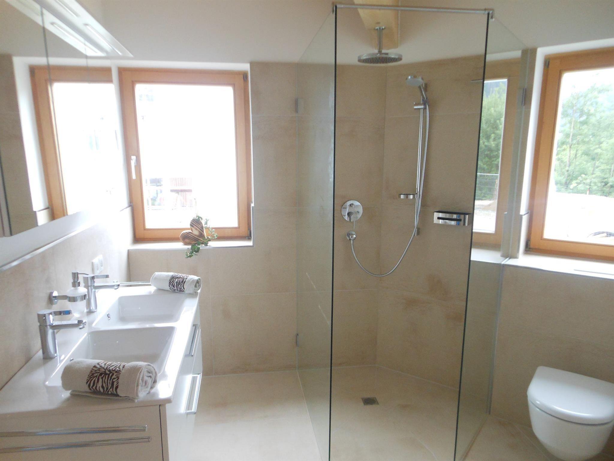 Weiters gibt es eine große Dusche, einen Trinkbrunnen und ein separates WC.