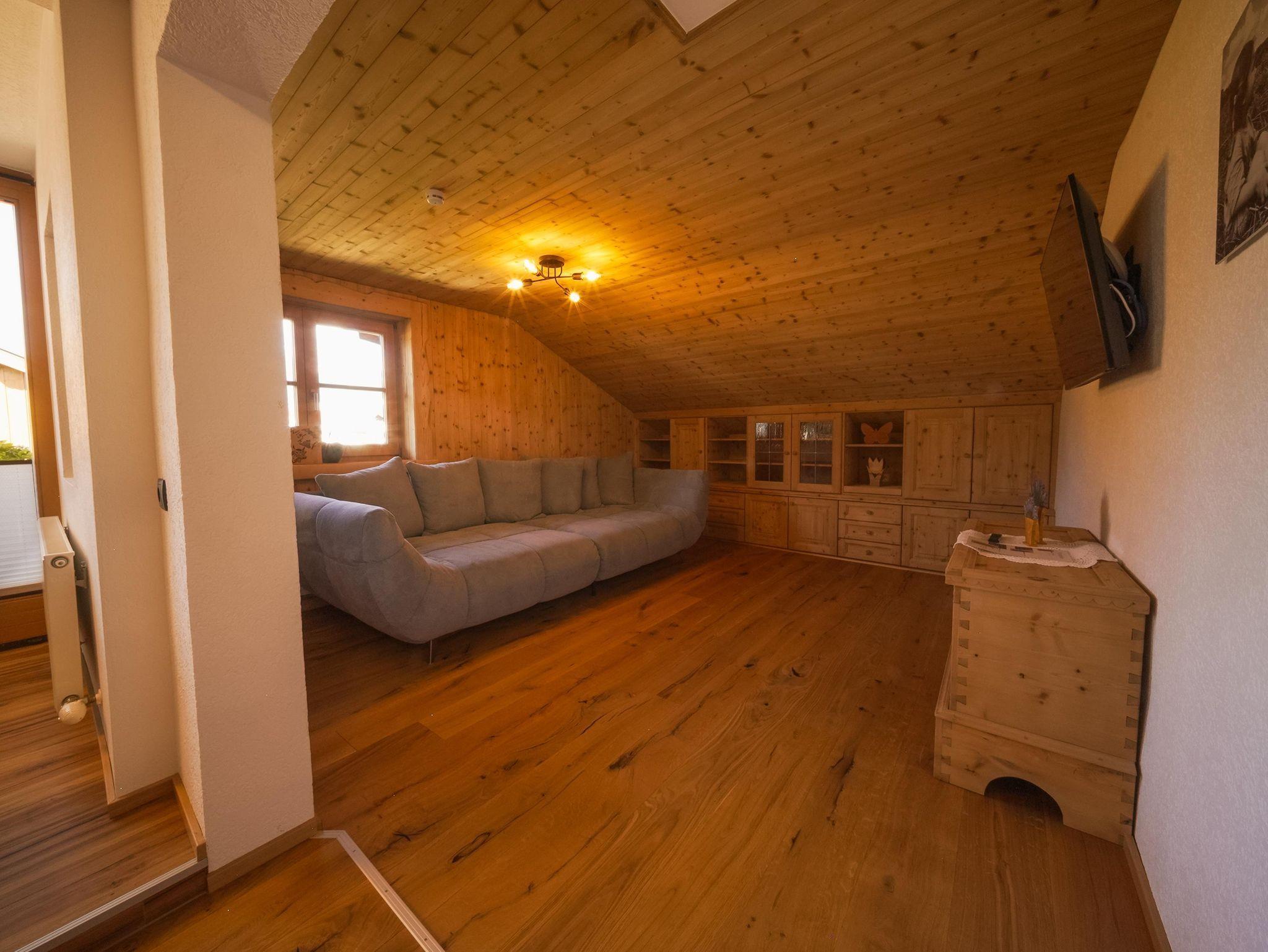 Das Apartment Wiglhof ist eine wunderschöne, ca. 110 m² große Wohnung im 2. Obergeschoß des Bauernhauses und wurde 2024 komplett renoviert. Die Wohnung bietet Platz für 1-4 Personen. Gemütlich macht dieses Apartment vor allem die Verbindung von Holz mit modernen Akzenten. Die Wohnung verfügt über 2 separate Schlafzimmer, eine große Wohnküche mit Küchenblock, E-Herd mit Backrohr, Dunstabzug, Kühlschrank, Geschirrspülmaschine, Kaffeemaschine, Wasserkocher, Toaster, mit gemütlichem Essbereich, einem modernen Sofa und Sat-TV. Auch ein großer Balkon mit Sitzmöglichkeit ist vorhanden.