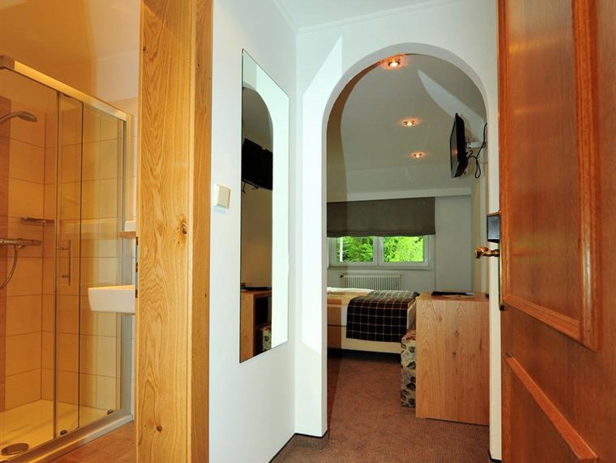Einbettzimmer mit Dusche,WC. Kabel-TV,Haarföhn,Zimmersafe und Radiowecker. Bademantel u. Badepantoffel
