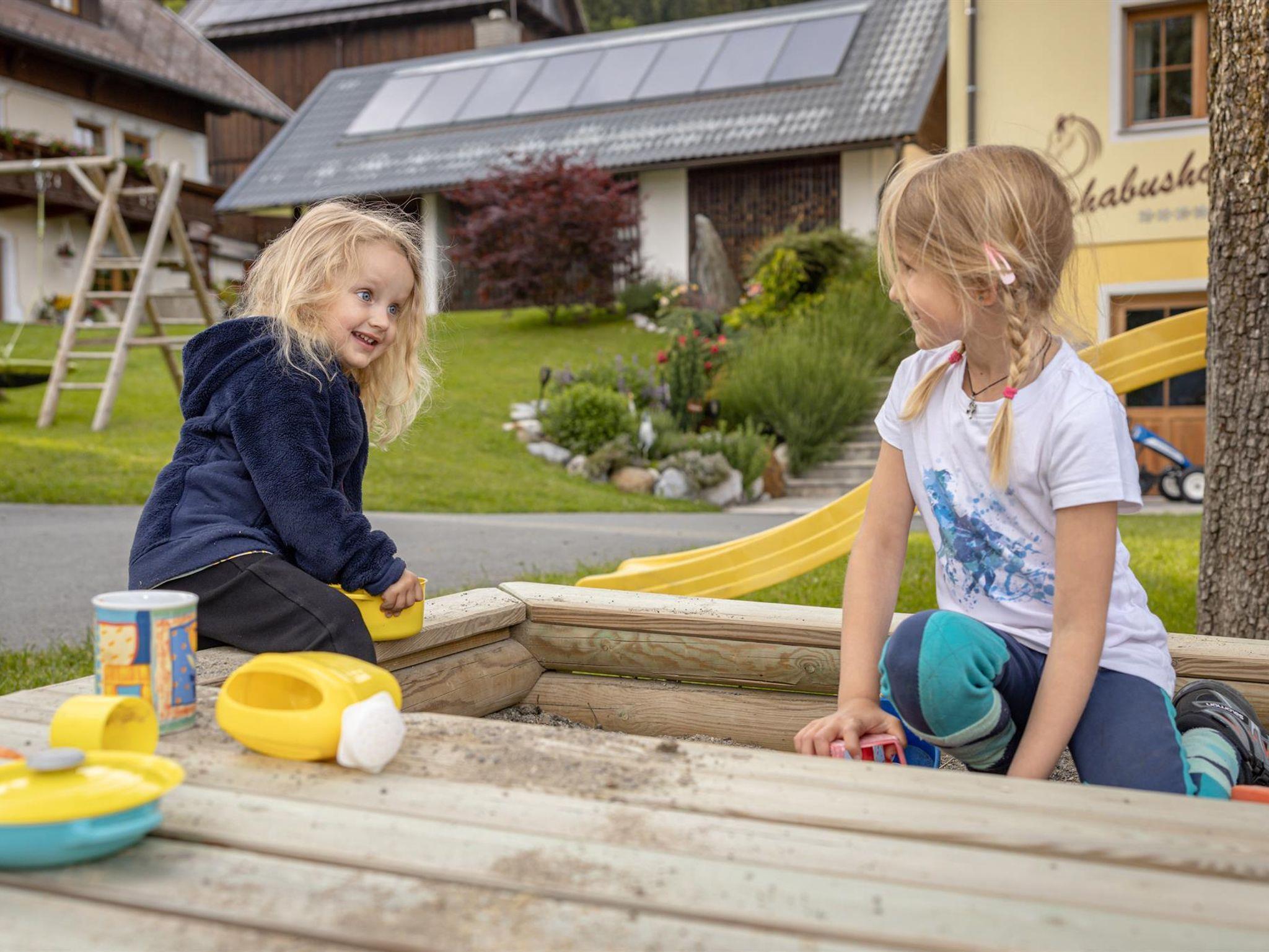 Unser Hof selbst bietet eine Vielzahl von tierischen Freunden – von Hasen über Katzen, Hühner, Rinder bis hin zu Pferden und Ziegen . Wenn Ihre Kinder beim Tiere füttern mithelfen oder auf dem Kinderspielplatz toben, können Sie sich auf der Liegewiese entspannen, während der Duft von Kräutern und frischen Blumen in der Luft liegt.