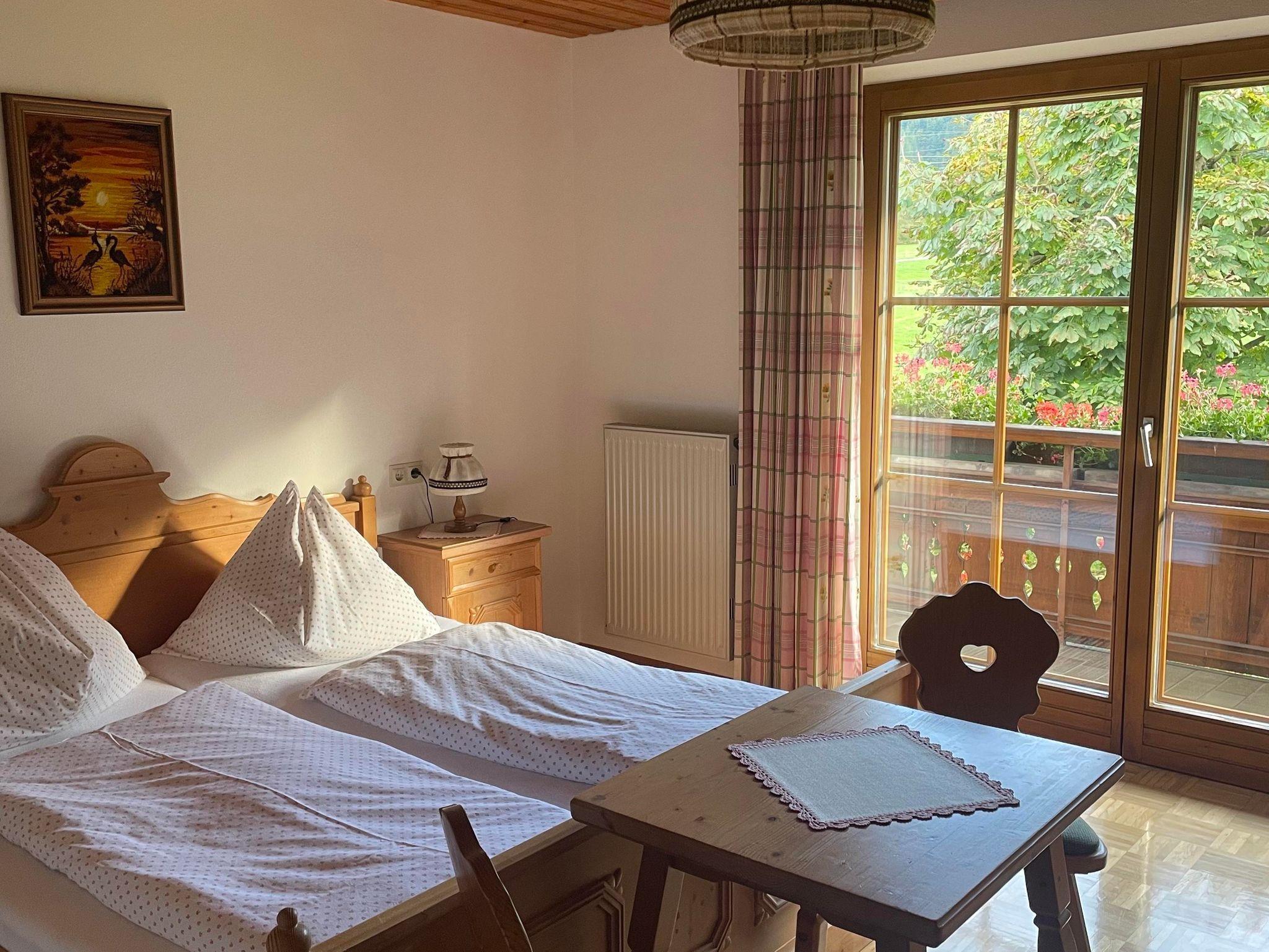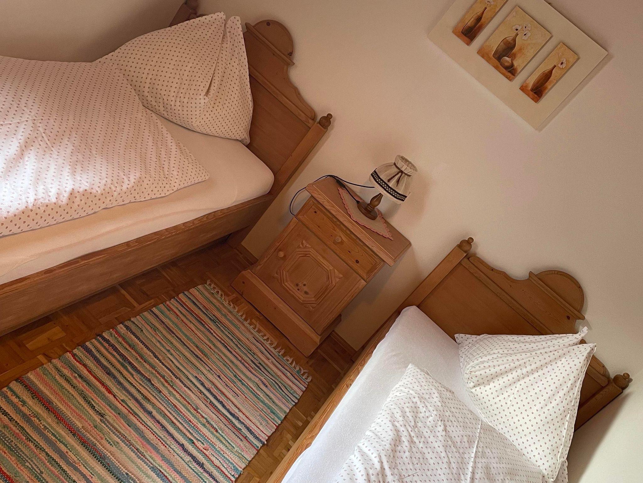 Ferienwohnungen im 1.Stock mit 60m² für 2-4 Personen (auf Anfrage für 5 Personen) bestehend aus 2 getrennten Schlafzimmern, Küche, Wohn- und Esszimmer, Badezimmer und WC seperat, Balkon/Terasse, TV, WiFi und Radio.