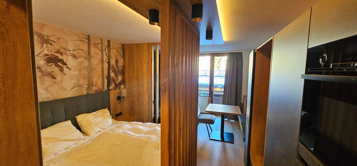 Diese neu renovierte Wohnung befindet sich im 3. Stock. 1 Wohnschlafraum mit Doppelbett, Couch, TV, Essecke, eine abgetrennte Küchenzeile mit Kaffeemaschine, Induktionsherd, Mikrowelle und Backofen Kombigerät, Kühlschrank; 1 Badezimmer mit Dusche und WC; Parkplätze am Gebäude. (Kein WLAN vorhanden)