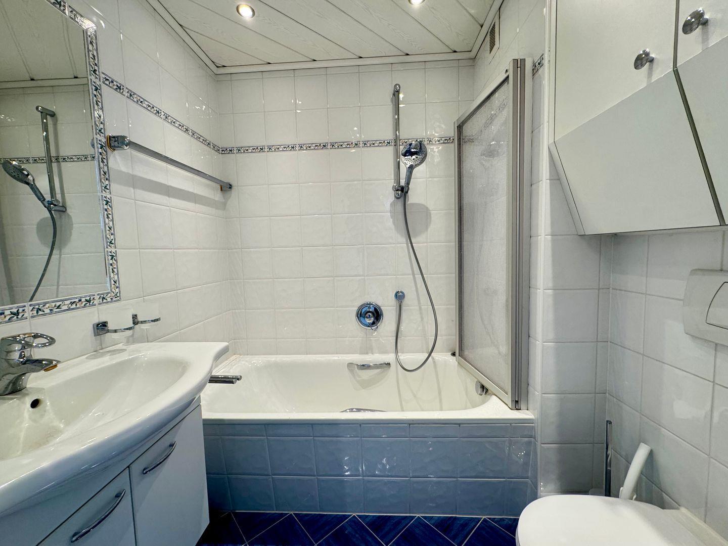 1 Wohn und Schlafzimmer das im Stil einer Loftwohnung geschnitten ist, mit einem Dopplstockbett sowie einem ausziehbarem Sofa (max. Belegung 5 Personen). Wohnzimmer mit Essecke und ausziehbarem Sofa, sowie einem Kleiderschrank und Kabel-TV und gratis Internetanschluss (W-Lan). Badezimmer Duschbadewanne und WC. Eine Küchenzeile mit Geschirrspüler, Filterkaffeemaschine, Wasserkocher, Backofen, großem Kühlschrank mit Gefrierfach, sowie Induktionsherd, Wasserkocher und Kaffeemaschine und einem großen Balkon und einen kleinen Kellerabteil. Parkplätze am Gebäude