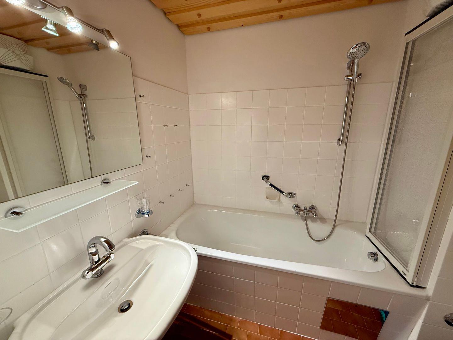 1x Doppelbett für 2 Personen (einteilige Matratze) aus Massivholz, sowie ein einzelnes Stockbett für 1 Person darüber; Essecke, gemütliches Sofa (ausziehbar), Flachbild-TV, DVD-Player, Spiele für die ganze Familie; komplett ausgestattete Küchenzeile mit Nespresso-Kapselmaschine, Wasserkocher, Kühlschrank mit Gefrierfach, 4-Platten-Ceranfeld und Backofen; Badezimmer mit Dusch-/Badewanne und WC, Haartrockner; Terrasse südseitig mit Tisch und Bänken; Liegestühle und Sonnenschirm sind auf der Terrasse Sommer wie Winter zur Verfügung. Parkplätze am Gebäude.