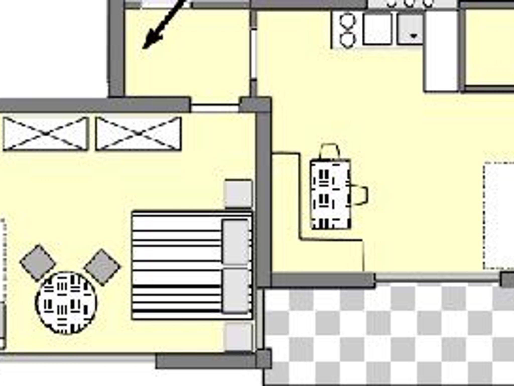 RAUMAUFTEILUNG: Das Appartement besteht aus einem großen Schlafzimmer mit einem Doppelbett und einem komfortablen Ausziehbett, einem Wohn- Schlafbereich ebenfalls mit einem komfortablen Ausziehbett eine komplett ausgestattete Kochnische, Essecke + SAT-TV. Ein Vorraum, ein Badezimmer mit Dusche und WC und eine großzügige nach Süden gelegenen Terrasse mit einer Größe von ca. 4 x 2,5 Metern.