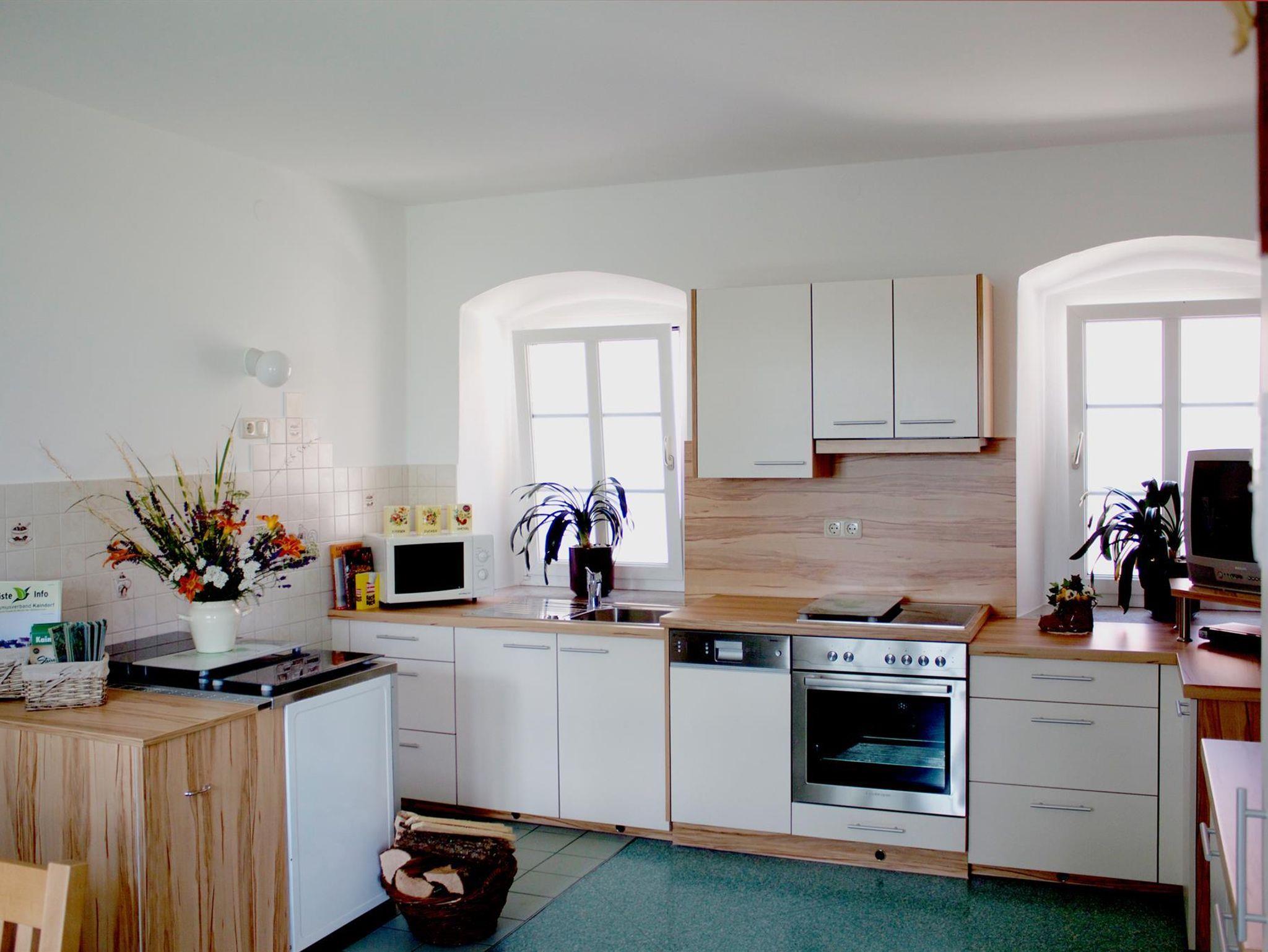 Das Ferienhaus in wundervoller, ruhiger Umgebung ist mit einer Wohn-Essküche mit Geschirrspüler, Mikrowelle, E-Herd, Tischherd, 3 Zonen Kühlschrank, Kaffeemaschine, Brotschneidemaschine sowie ausreichend Geschirr und div. Haushaltsgeräten ausgestattet.