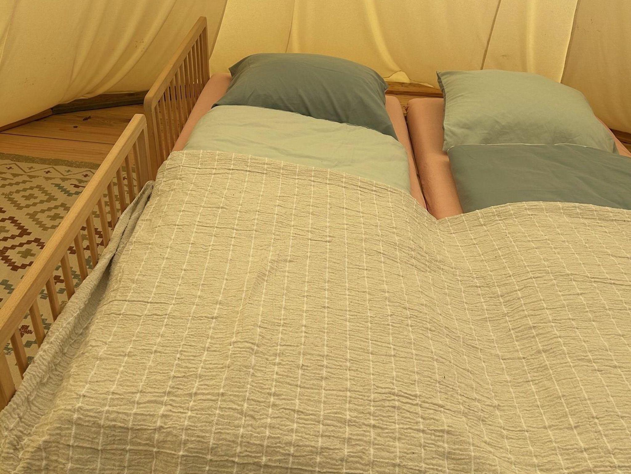 Es ist mit 20 m² Holzboden und zwei Betten (Matratzen und Leintuch) ausgestattet - auf Wunsch auch mit Strom versorgt. Kinder können sich am Spielplatz austoben oder die zahlreichen Hoftiere kennenlernen. Ein knisterndes Lagerfeuer an der Feuerstelle rundet das Camping-Erlebnis ab.