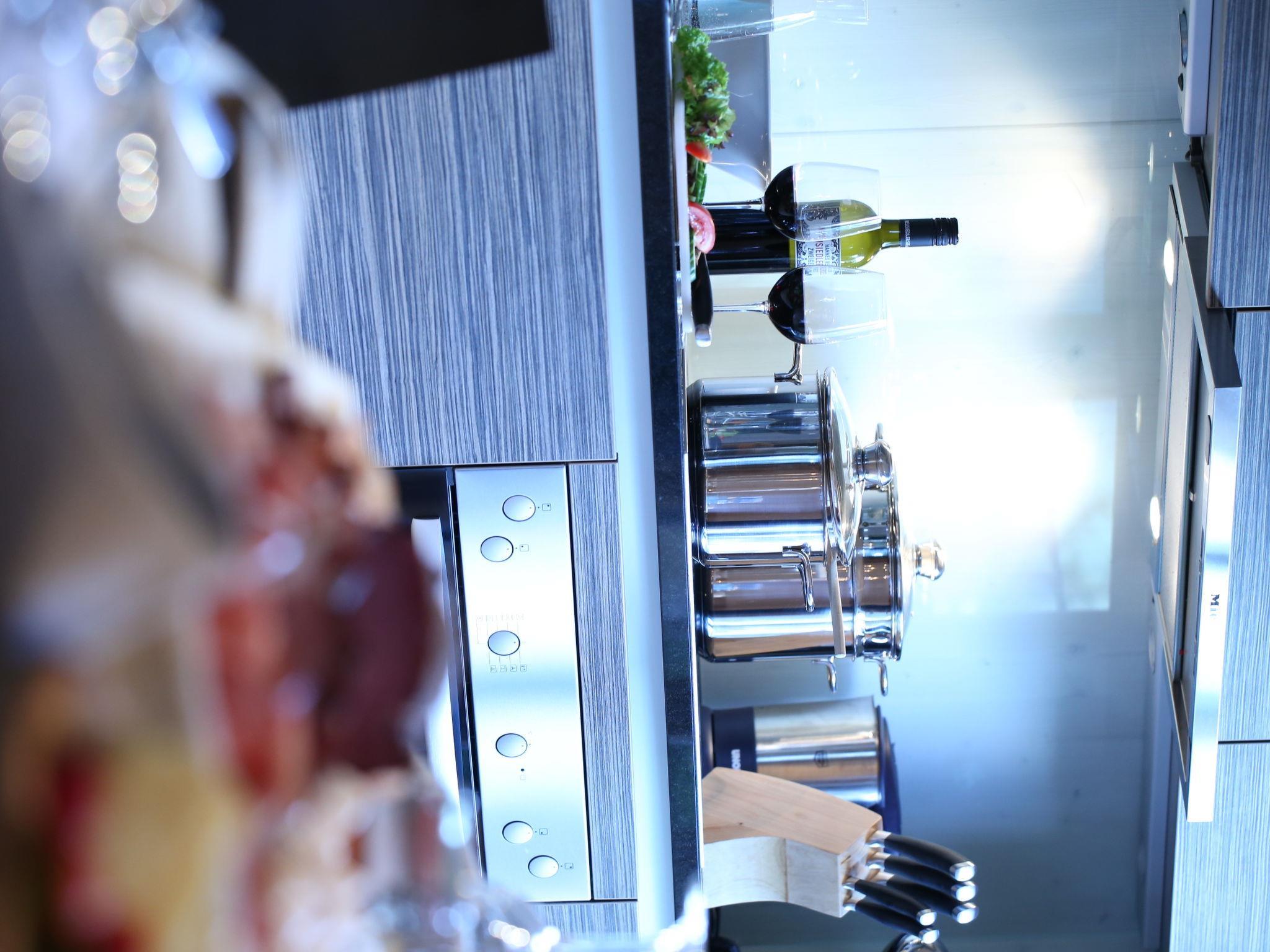 "Klassik (3SZ)", 4-room chalet 110 m2. Bright, comfortable and cosy furnishings: dining room. 3 double bedrooms, each room with satellite TV (flat screen). Living room with tiled stove. Small, open kitchen (oven, dishwasher, 4 ceramic glass hob hotplates, microwave, electric coffee machine) with dining table. 2 showers, 2 sep. WC's. On the lower ground floor: entrance hall. 2 small balconies 6 m2. Balcony furniture, box-room. Very beautiful view of the mountains and the countryside. Facilities: washing machine, dryer, safe, hair dryer. Internet (WiFi, free). Please note: non-smokers only. Smoke alarm. The chalet has an infrared deep heat cabin.