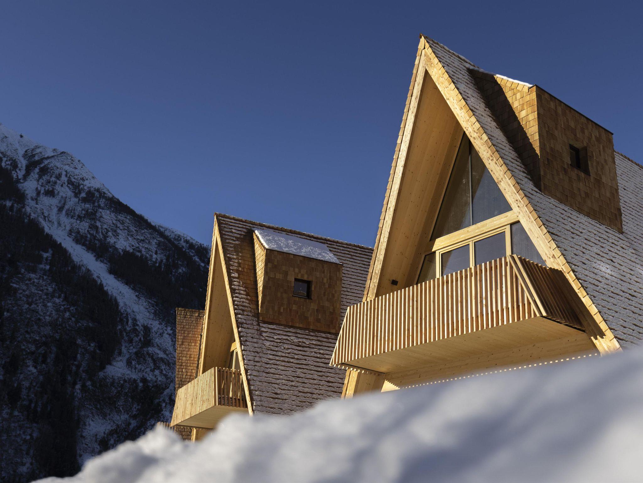 Das COLLIS HILL in Kals am Großglockner erwartet euch. Die Form der dreieckigen Holzbauten ist inspiriert von nordamerikanischen Tipis und genauso von den hoch aufragenden Berggipfeln und Baumwipfeln.