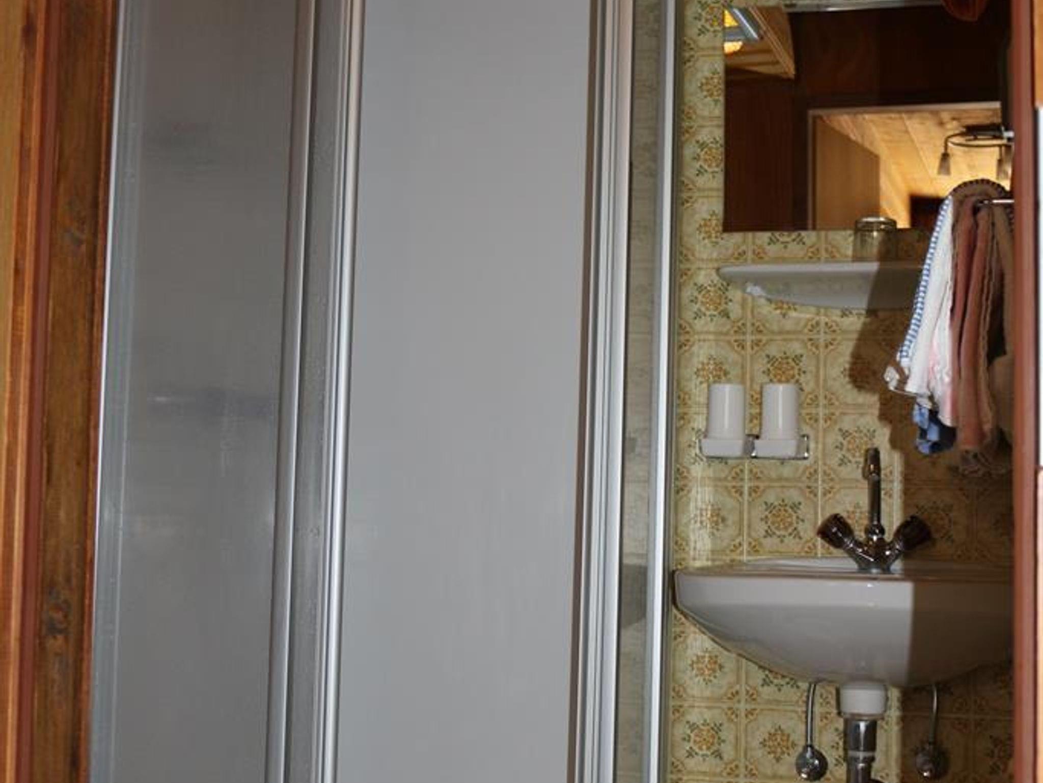 Das Zimmer ist nach Süden gerichtet mit Blick über das ganze Tal. Mit Doppelbett, Couch, Tisch mit 2 Stühlen, eigener Balkon und Dusche/WC augestattet.