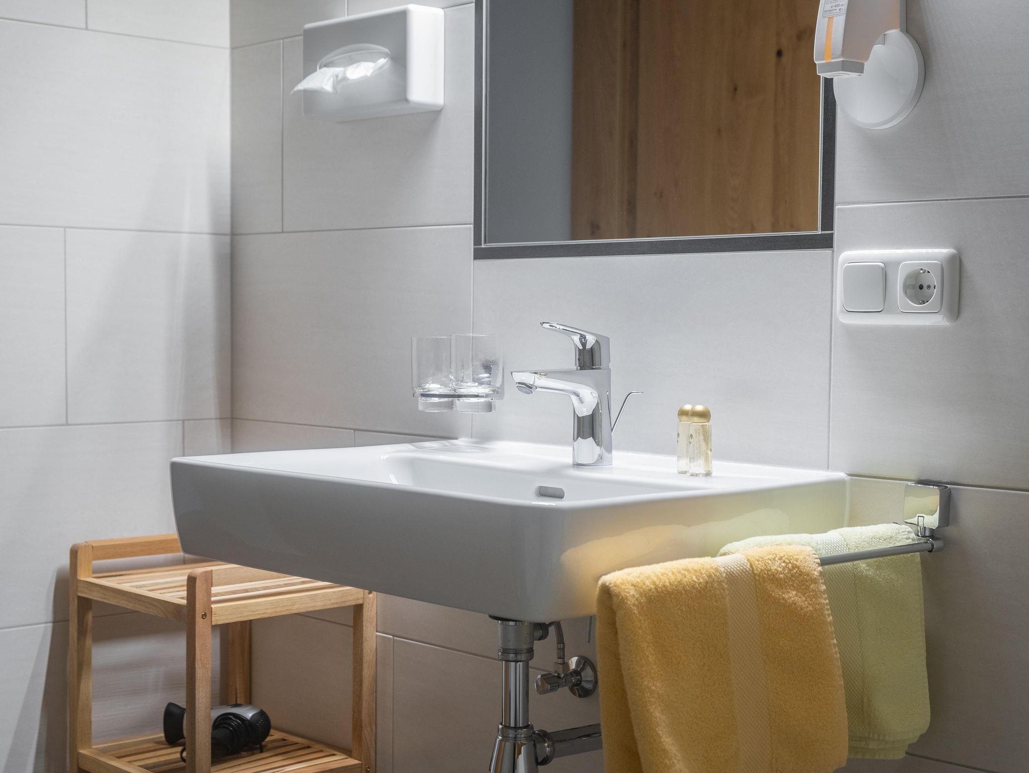 Für einen besonders gesunden Schlaf sorgt der Duft der Zirbe. Das Zimmer ist mit Holzboden und Zirbenmöbel ausgestattet. Das Doppelzimmer hat direkten Zugang zum Balkon, SAT-TV, Dusche und WC.