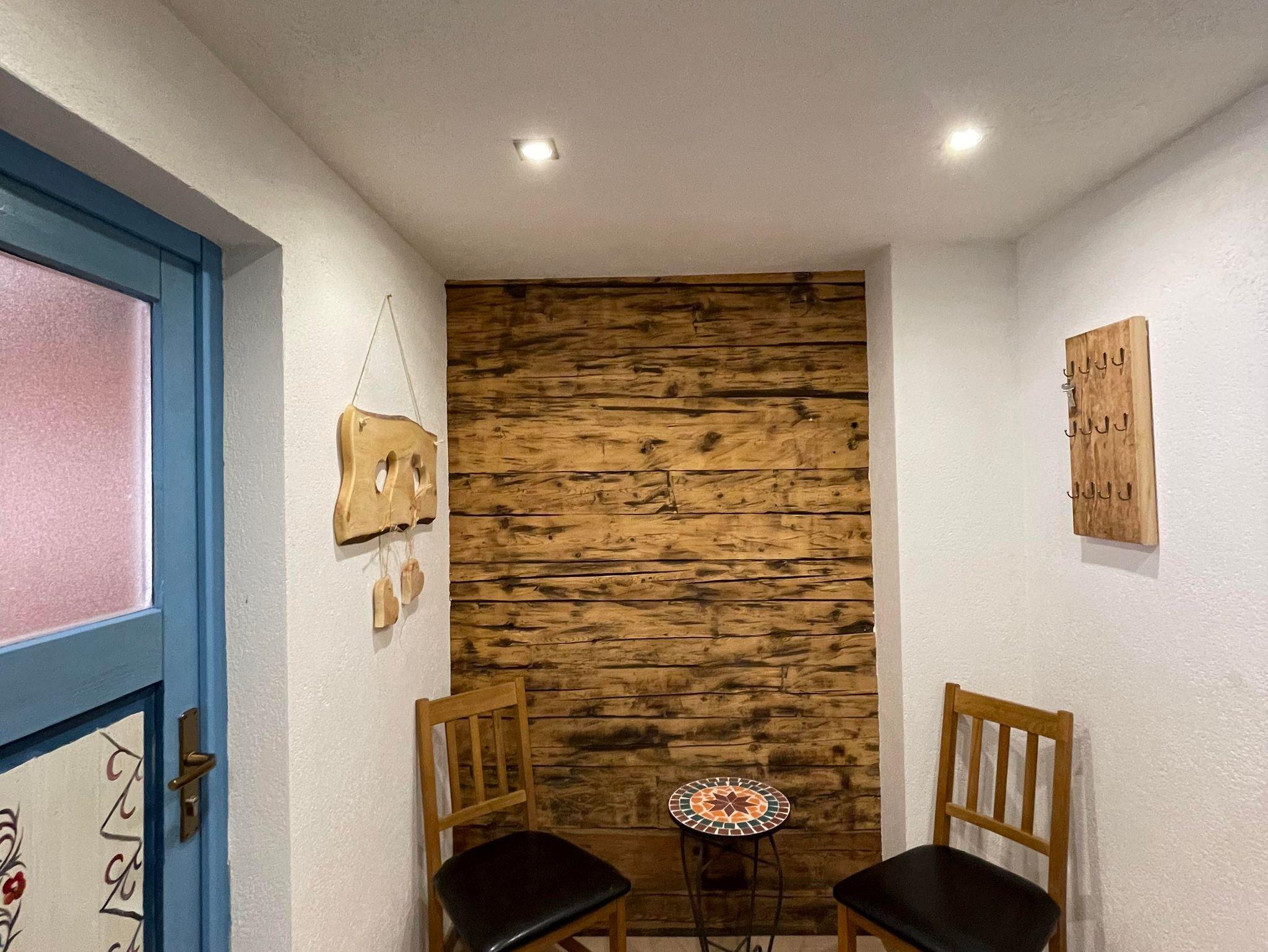 Ein gemütliches Zimmer im Erdgeschoss welches über eine alte Holzdecke verfügt.
