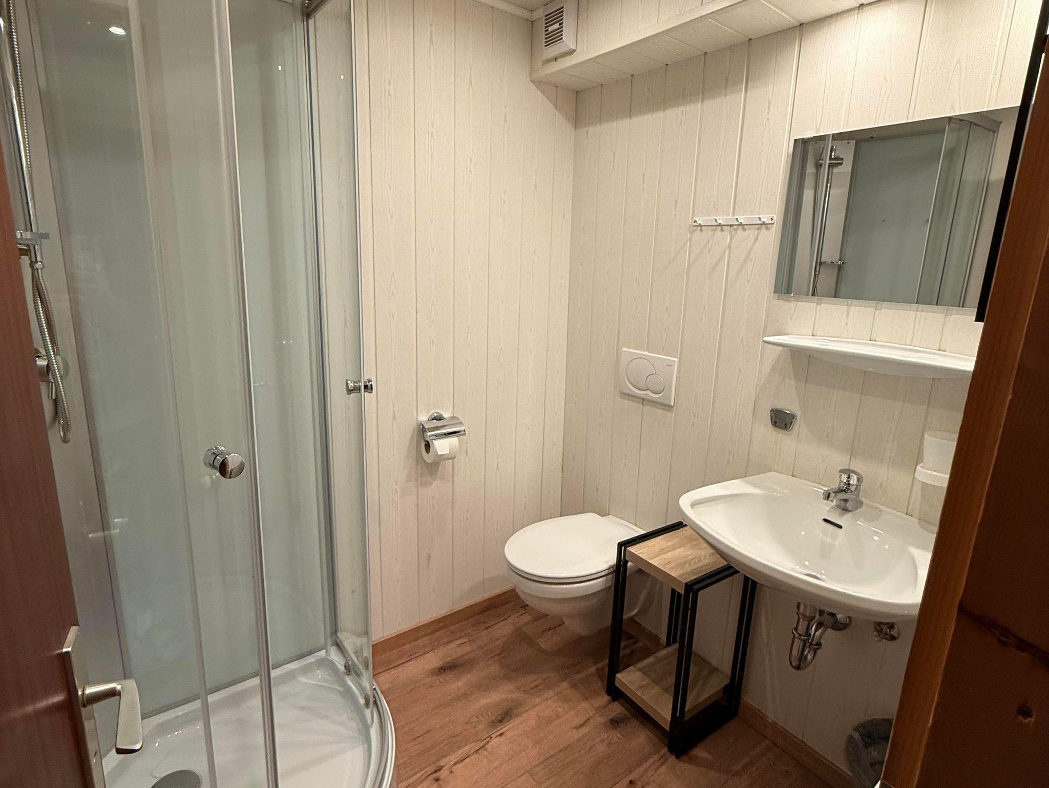 Im Zimmer befinden sich Dusche/WC und Fernseher.