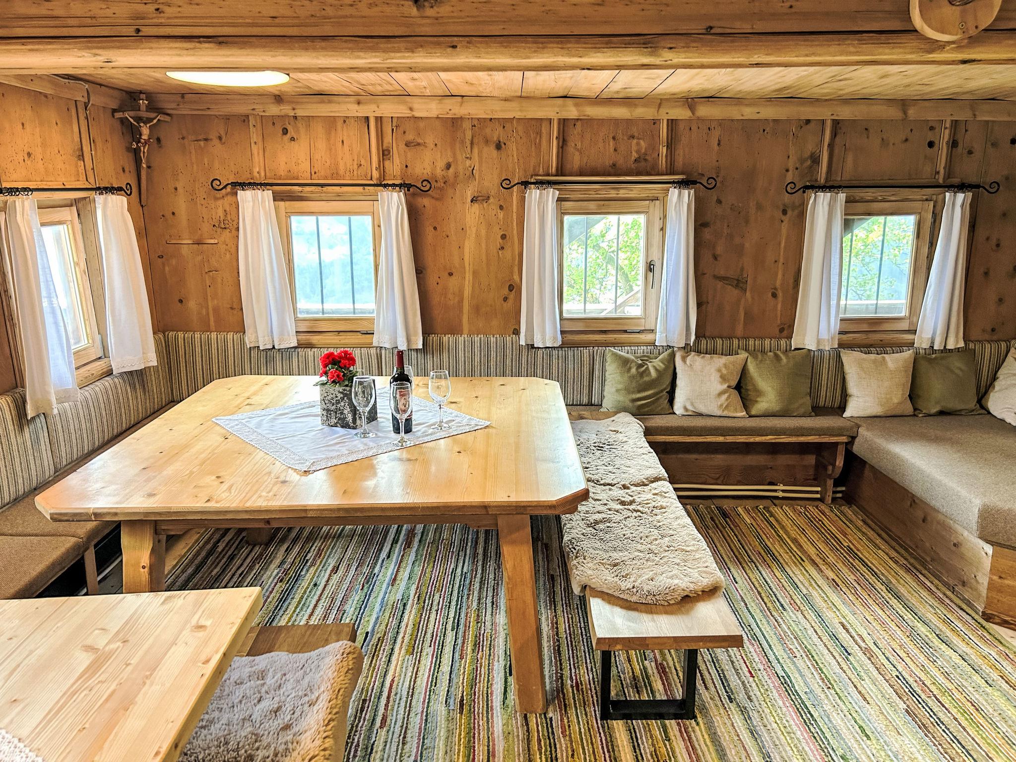7-room farmhouse 150 m2 on 2 levels. Rustic furnishings: entrance hall. Large living room with dining nook and satellite TV (flat screen). 1 double bedroom. Kitchen (oven, dishwasher, 4 ceramic glass hob hotplates, microwave) with dining nook. Shower, sep. WC. Upper floor: 2 double bedrooms. 2 rooms, each room with 1 bed and 1 double bed. 1 room with 2 beds. Shower/WC. The living room is a farmhouse lounge. Balcony. Box-room. Marvellous panoramic view of the mountains and the valley. Please note: maximum 2 pets/ dogs allowed. Smoke alarm.