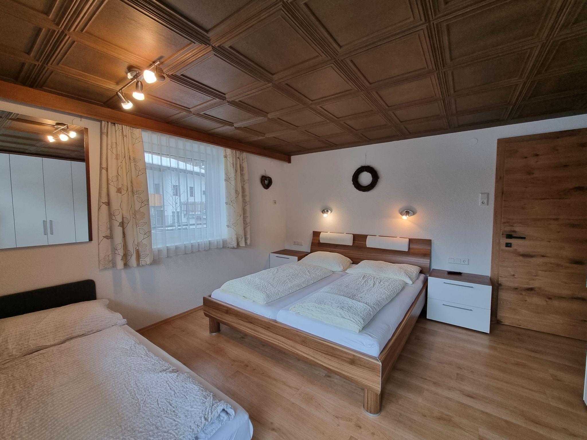 "Alpenliebe", 3-room apartment 75 m2, on the upper floor. Beautiful furnishings: 2 rooms, each room with 1 bed and 1 double bed. Exit to the balcony. Kitchen-/living room (oven, dishwasher, 4 ceramic glass hob hotplates, toaster, kettle, microwave, electric coffee machine) with dining table and satellite TV. Exit to the balcony. 2 showers/WC. Oil heating. Balcony. Balcony furniture, barbecue. Panoramic view of the mountains and the valley. Facilities: children's high chair, baby cot. Internet (WiFi, free). Please note: non-smokers only. Maximum 1 pet/ dog allowed. Smoke alarm, fire extinguisher.