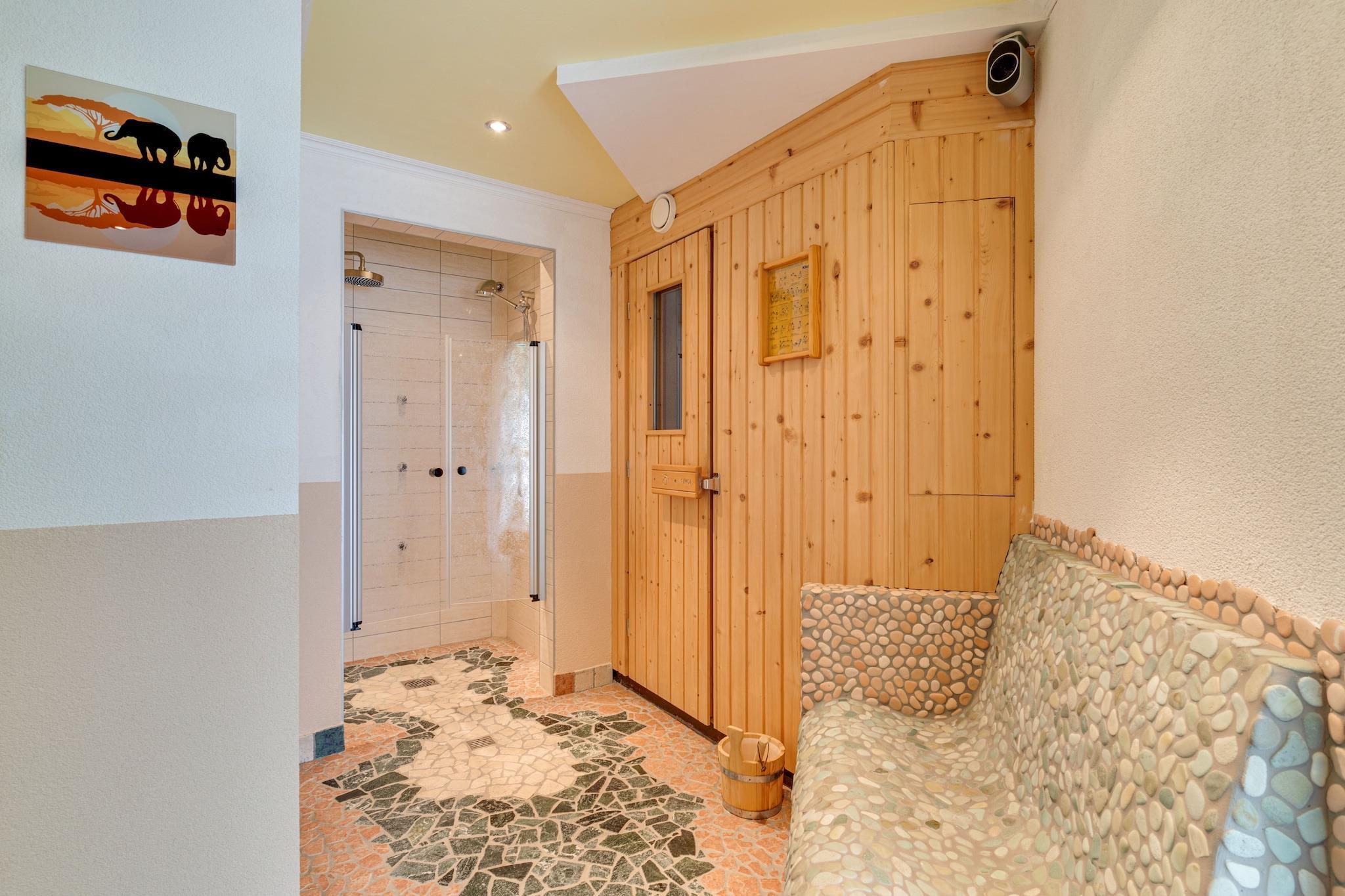 Stueetage: (Køkken(Fjernsyn, spisebord, radio, elkedel, komfur(Komfur med fire kogeplader, glaskeramisk), kaffemaskine(kaffetragt), ovn, opvaskemaskine , køle-fryseskab, balkon), soveværelse(enkeltsovesofa, dobbeltseng, balkon), Soveværelse med badeværelse(enkeltsovesofa, dobbeltseng, bruser, håndvask, toilet, balkon), Soveværelse med badeværelse(dobbeltseng, bruser, håndvask, balkon), badeværelse(bruser, håndvask, toilet), toilet) toilet, loungerum, sauna, Tyrkisk bad, skiopbevaring(skistøvlevarmere), balkon, varme(central), 2x parkering, barneseng, barnestol