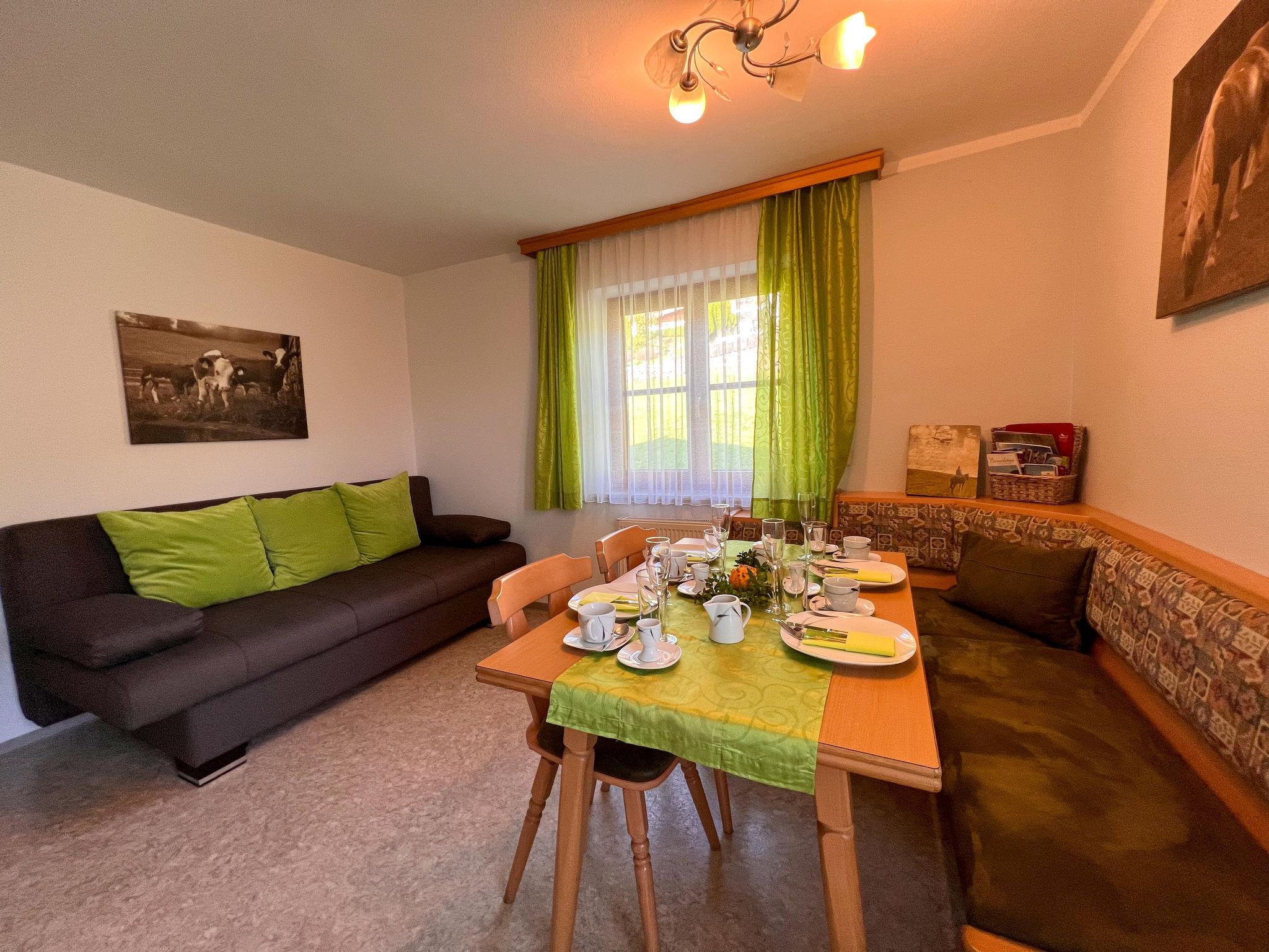 "Bauernhof Gasteg (S)", 3-room apartment 50 m2 on 1st floor. Simple and cosy furnishings: 1 room with 1 double bed. 1 room with 1 x 2 bunk beds. Kitchen-/living room (oven, dishwasher, 4 ceramic glass hob hotplates, kettle, electric coffee machine) with dining nook and cable TV. Exit to the balcony. Shower/WC. Facilities: children's high chair, baby cot. Internet (WiFi, free). Please note: non-smokers only. Maximum 1 pet/ dog allowed. Smoke alarm. 50616-001093-2020