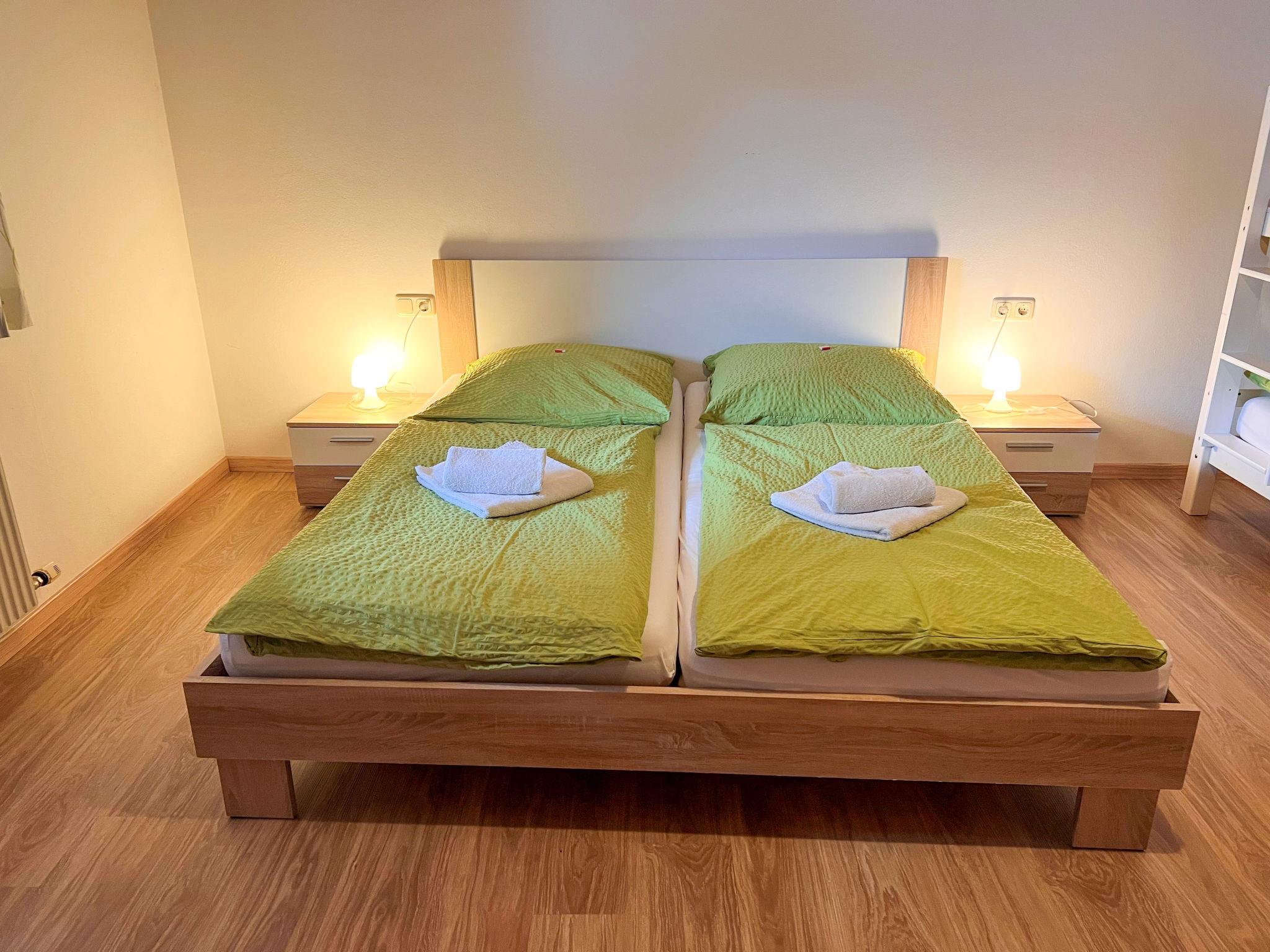 "Haslinghof (PID235)", 3-room apartment 70 m2 on 1st floor. Spacious, practical and tasteful furnishings: 1 double bedroom. Exit to the balcony. 1 room with 1 bed and 1 double bed. Kitchen-/living room (oven, dishwasher, 4 ceramic glass hob hotplates, toaster, kettle, electric coffee machine) with dining nook, cable TV and flat screen. Exit to the balcony. Shower, sep. WC, double hand-basin. Heating. Wooden floors. Balcony. Panoramic view. Facilities: children's high chair, baby cot. Internet (WiFi, free). Parking (2 cars) at the house. Please note: non-smokers only. When there are less than the maximum number of guests staying at the property, not all of the housing units will be available for use. 50616-001082-2020