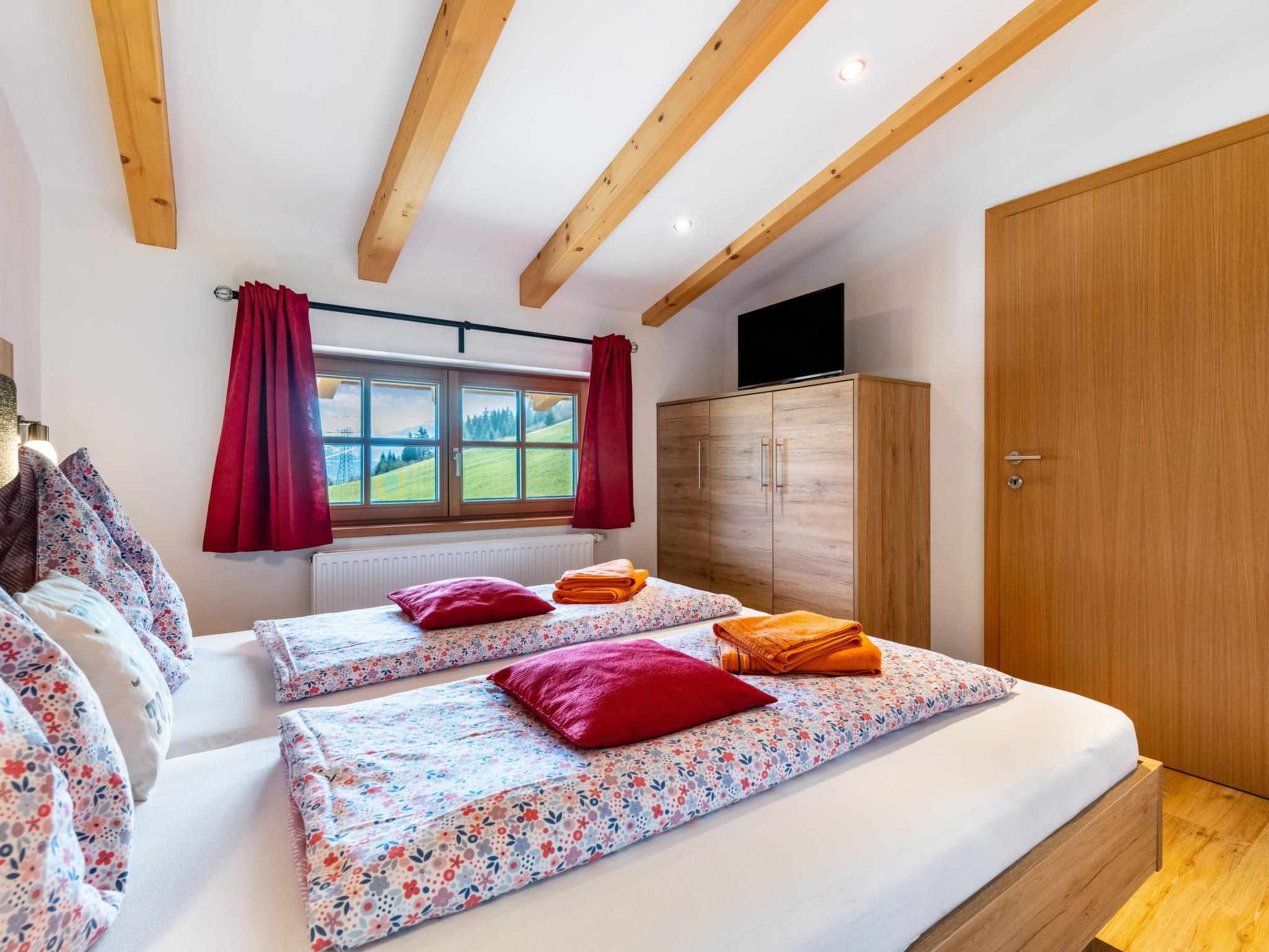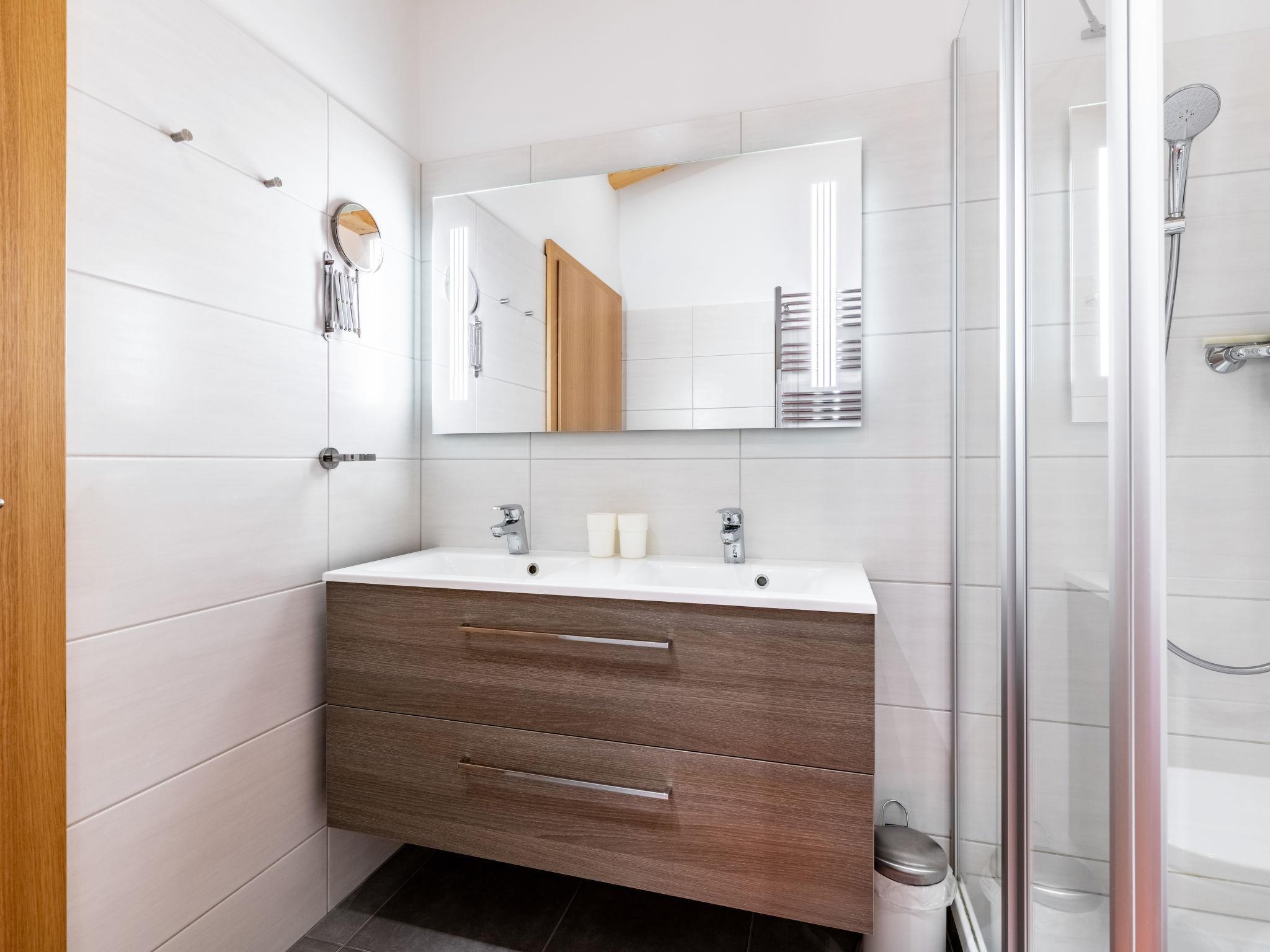 3-room apartment 65 m2, on the top floor. With sloping ceilings, romantic furnishings: 1 double bedroom with shower/WC, double hand-basin and satellite TV (flat screen). 1 double bedroom with satellite TV (flat screen). Large kitchen-/living room (oven, dishwasher, 4 ceramic glass hob hotplates, microwave, electric coffee machine, Capsules for coffee machine (Senseo)) with 1 pull-out bed (2 pers.), dining table and satellite TV (flat screen). Exit to the balcony. Shower, sep. WC, double hand-basin. Floor heating. Balcony 5 m2. View of the countryside. Facilities: children's high chair for up to 2 year olds, hair dryer. Internet (WiFi, free). Please note: non-smokers only. Smoke alarm. 50616-001214-2020