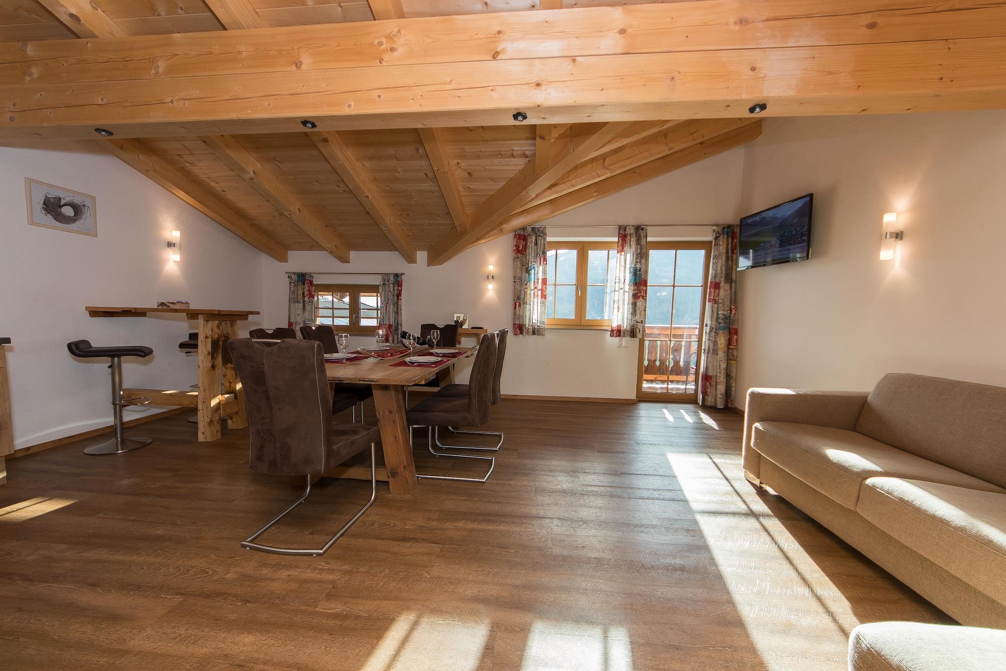Dette store, moderne og typisk østrigske landsted til højst 18 personer ligger direkte på Kapruns skråninger i Salzburgerland og er en rigtig ski-in, ski-out overnatning om vinteren! Landstedet, som du har helt for dig selv, er opdelt i 2 lejligheder, beliggende på 1. og 2. sal. Begge lejligheder har egen indgang, hvilket gør huset ideelt til familier eller venner, der rejser sammen. Begge lejligheder er rummelige og moderne indrettede, selvom atmosfæriske østrigske detaljer ikke er glemt. De smagfulde stuer med hver et åbent køkken byder på masser af plads. Derudover er der i alt 7 soveværelser og 7 badeværelser til din rådighed. Fra altanerne har du en enestående udsigt over det omkringliggende bjerglandskab. Om sommeren kan du også benytte den store have, og der er parkeringsplads direkte ved huset. I Zell am See - Kaprun tilbyder Ski Alpin Card i alt 408 kilometer pister i 3 top skiområder: Schmittenhöhe som et familievenligt skiområde, Kitzsteinhorn gletscherskiområdet byder på en højalpin oplevelse og Saalbach-Hinterglemm -Leogang-Fieberbrunn skicirkus har et stort antal varierede pister. Udover vintersport er der også masser af sportsmuligheder for de andre årstider: rafting eller white water kanosejlads, vandreture, mountainbike, golf på 18-hullers golfbanen, som ligger blot et par minutter væk. Strandene Seespitz og Erlberg i Zell am See byder også på masser af badesjov om sommeren! Kort sagt: Hele Kaprun-Zell am See-regionen har meget at tilbyde dig på alle fire årstider!