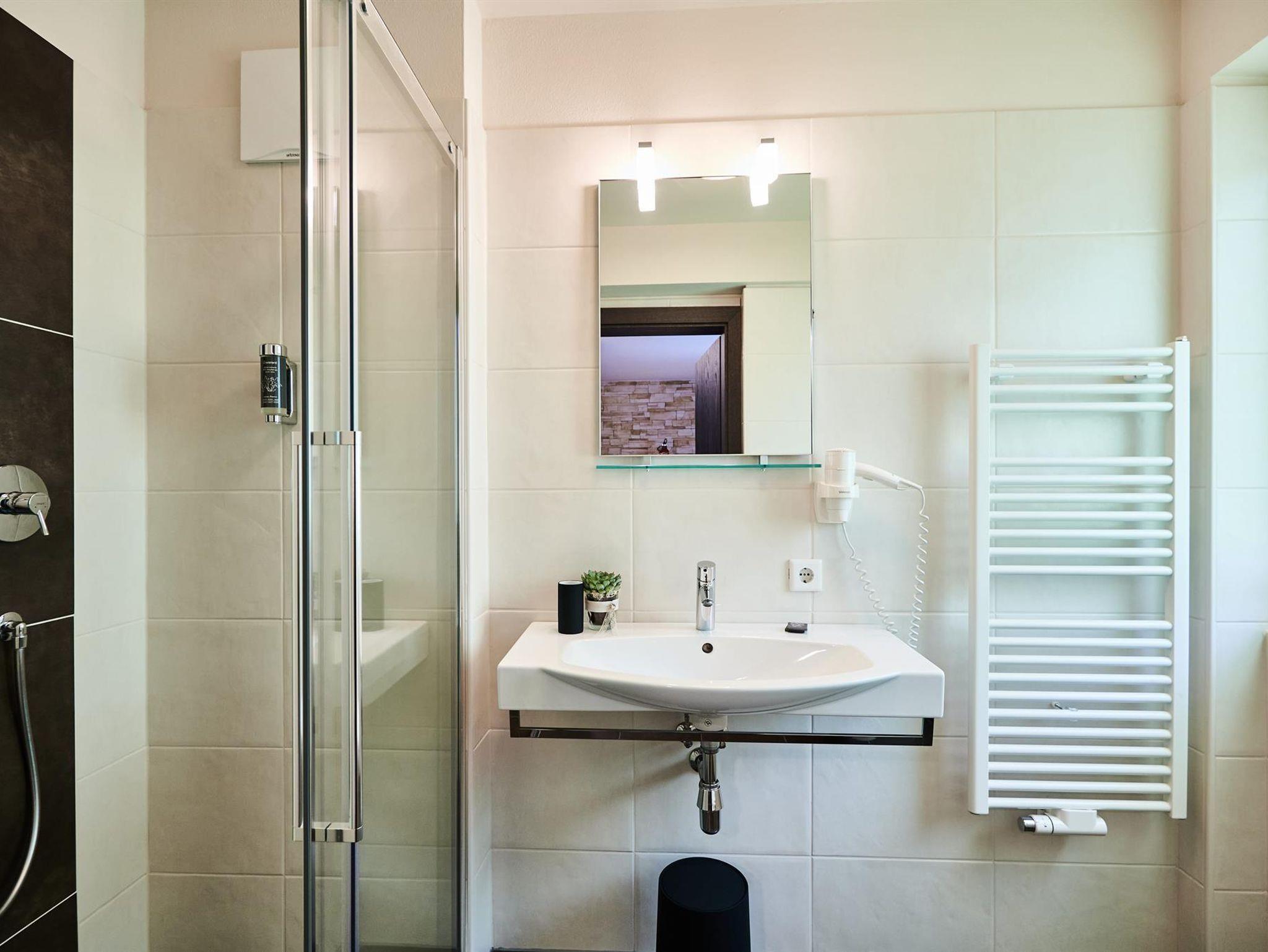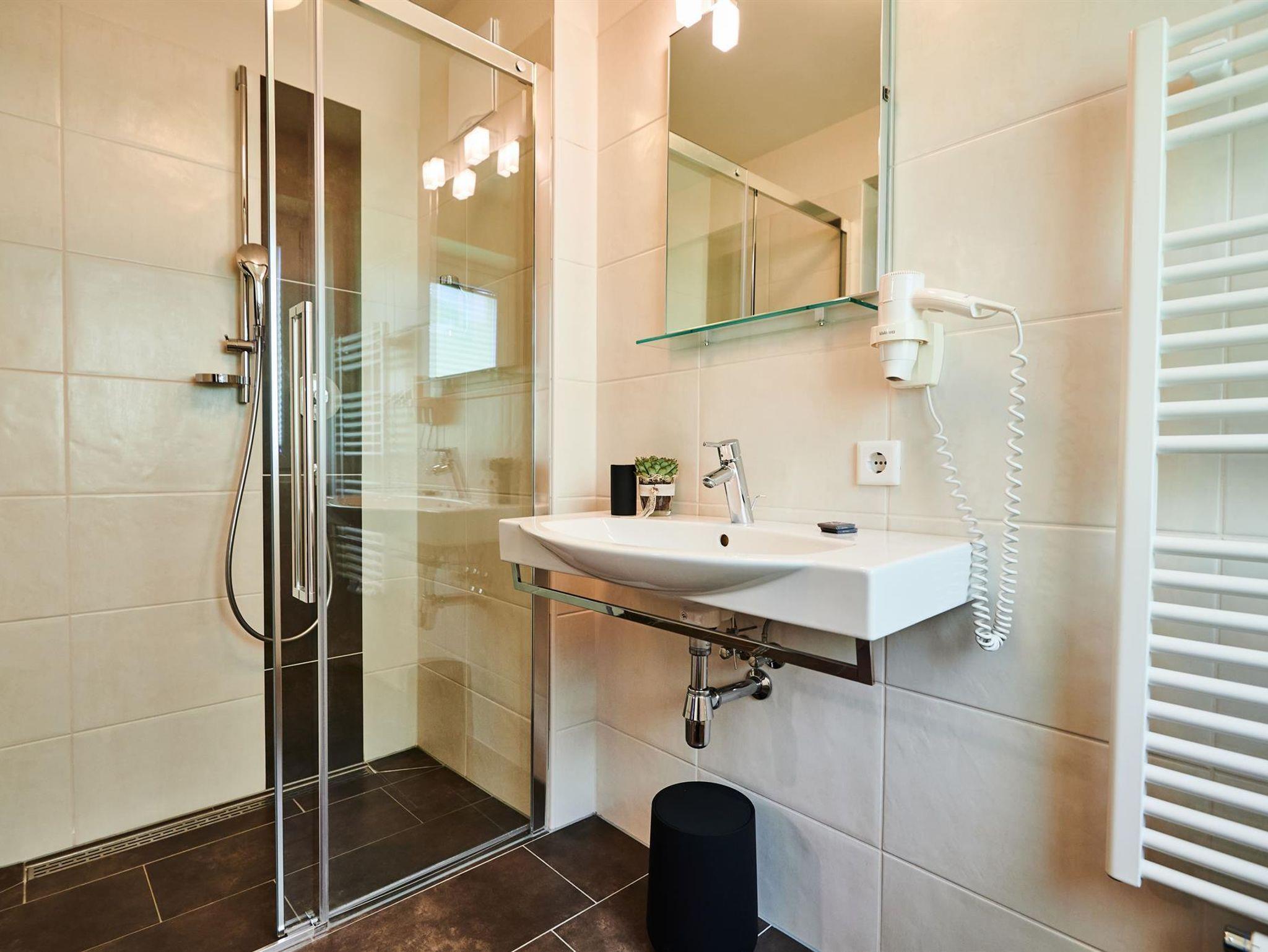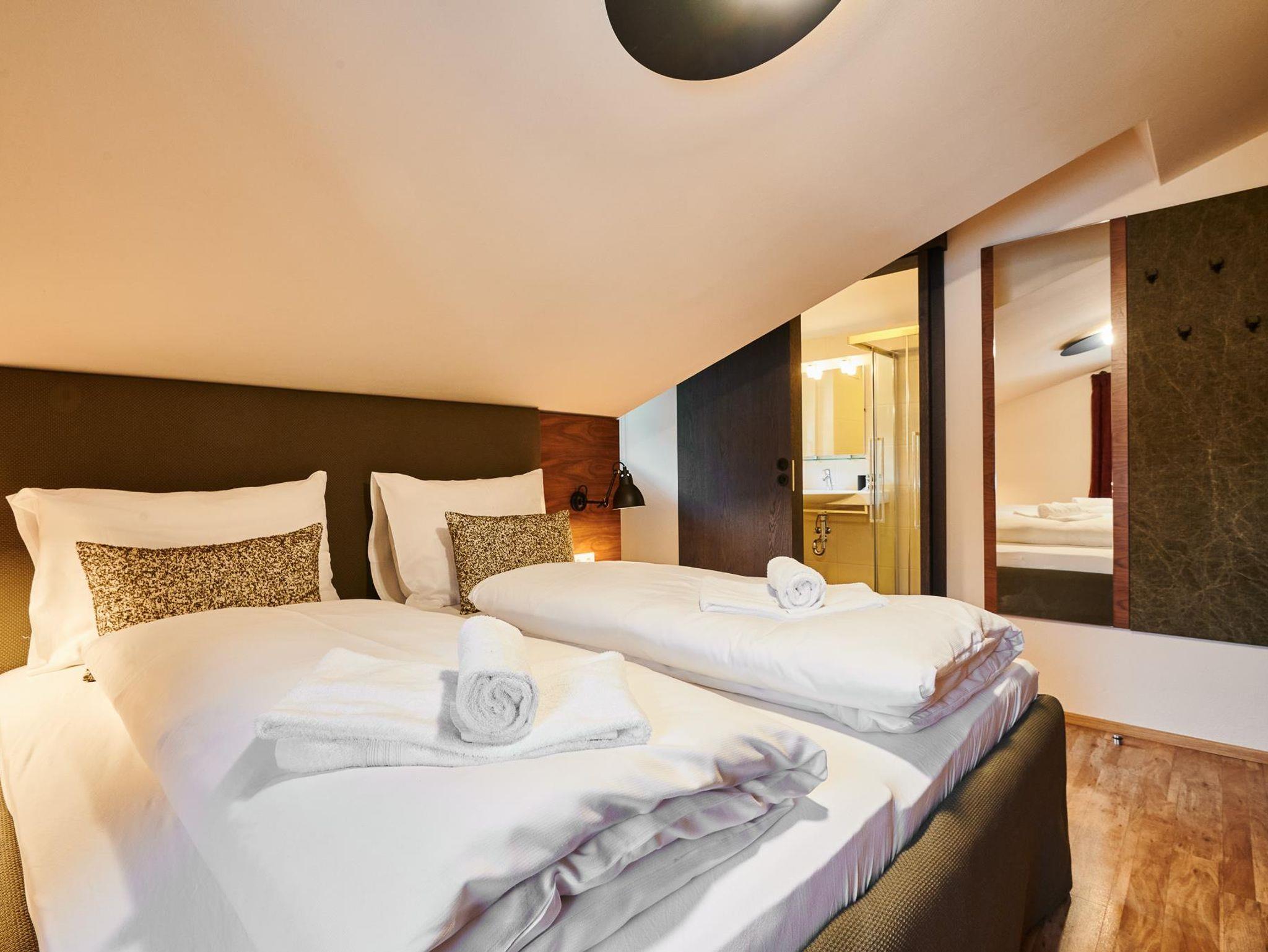 Unsere großzügigen Wohnungen bieten Platz für bis zu 6 Personen. Dabei haben wir mit 2 separaten Schlafzimmern und 2 getrennten Bädern die ideale Aufteilung für Gruppen oder größere Familien gefunden. Im Wohnzimmer können auf unseren Schlafsofas 2 weitere Personen übernachten. Das moderne Badezimmer ist mit einer ebenerdigen Dusche ausgestattet. Weiters parken unsere Gäste direkt vor dem Haus und genießen eine exzellente W-Lan Verbindung in der gesamten Wohnung.