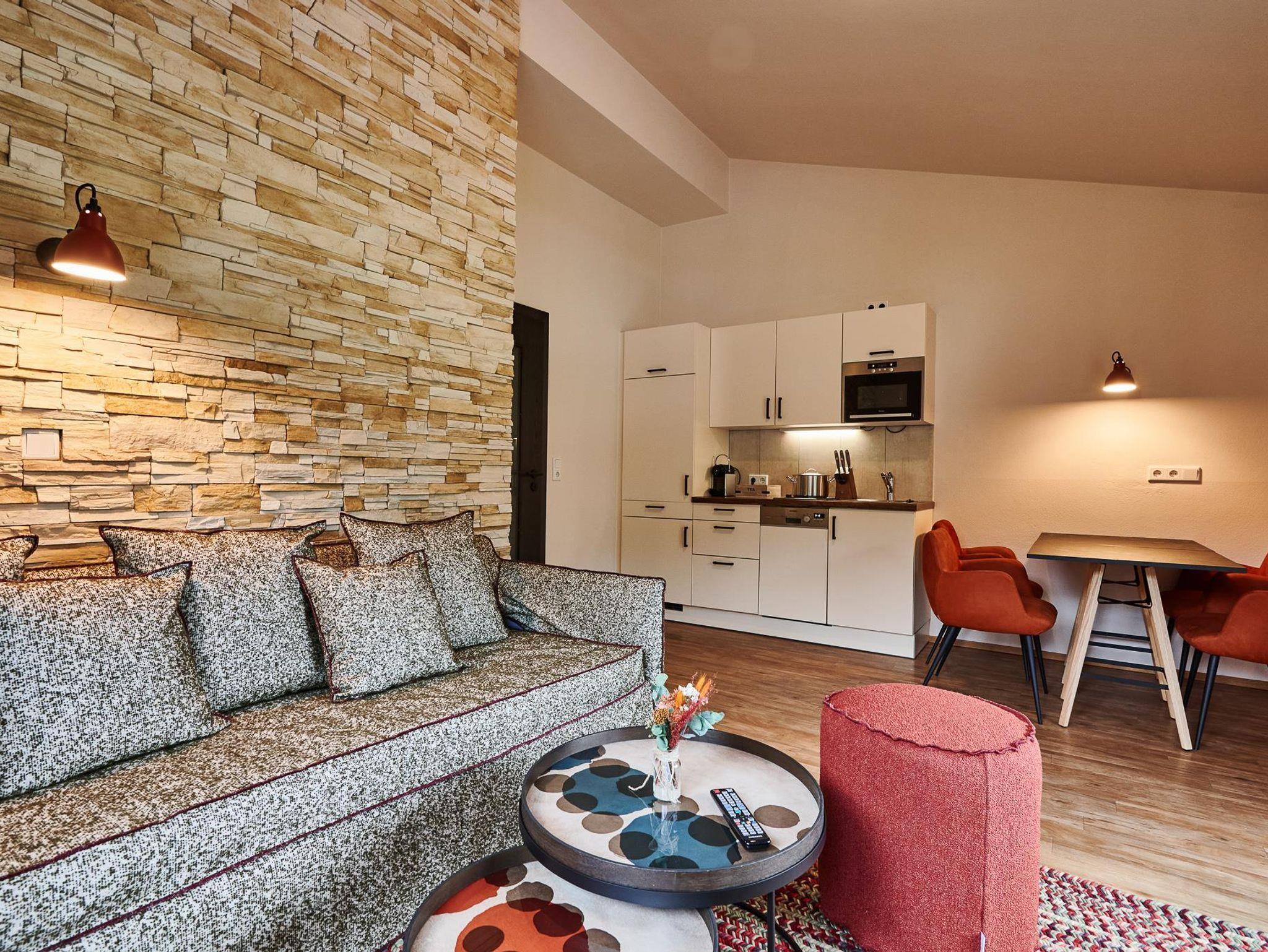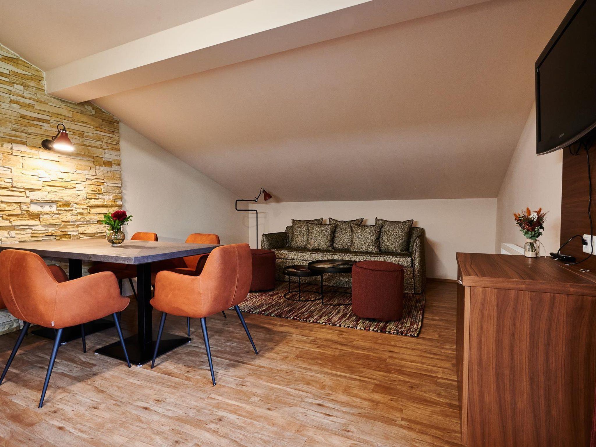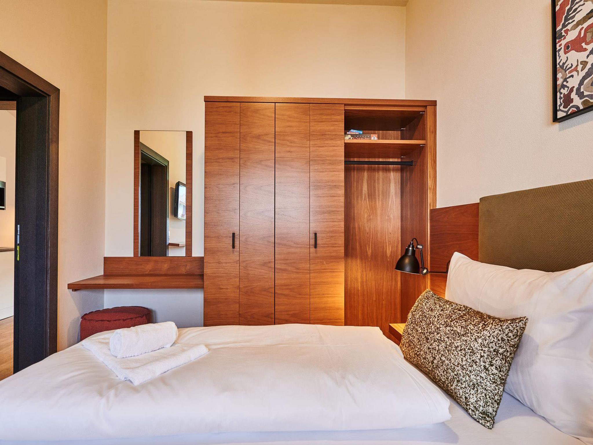 Unsere großzügigen Wohnungen bieten Platz für bis zu 6 Personen. Dabei haben wir mit 2 separaten Schlafzimmern und 2 getrennten Bädern die ideale Aufteilung für Gruppen oder größere Familien gefunden. Im Wohnzimmer können auf unseren Schlafsofas 2 weitere Personen übernachten. Das moderne Badezimmer ist mit einer ebenerdigen Dusche ausgestattet. Weiters parken unsere Gäste direkt vor dem Haus und genießen eine exzellente W-Lan Verbindung in der gesamten Wohnung.