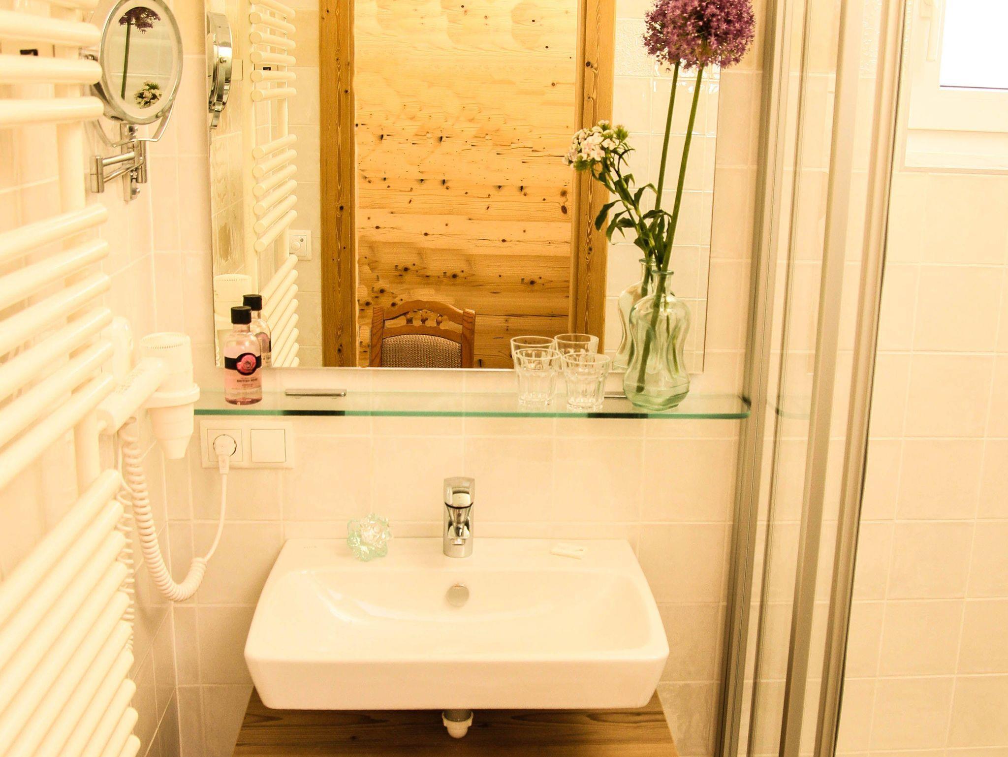 Der alpine Chic ist der rote Faden, der vom Schlafraum über das Badezimmer bis hinaus zum Balkon reicht. Hier möchte man nichts anderes tun als die frische Bergluft zu atmen! Begleitet vom Gefühl, genau zur richtigen Zeit am richtigen Ort zu sein!