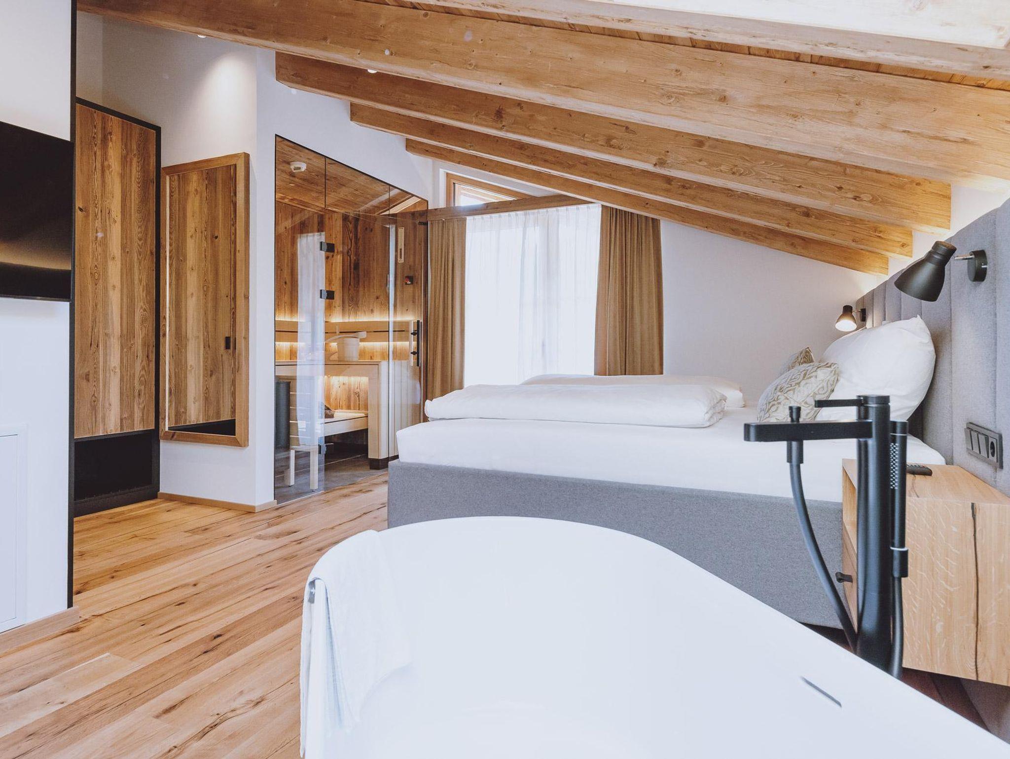 • Hochwertig ausgestattete Chalets (2- 8 Personen) und Suiten (2- 4 Personen) mit teilweise eigener Sauna