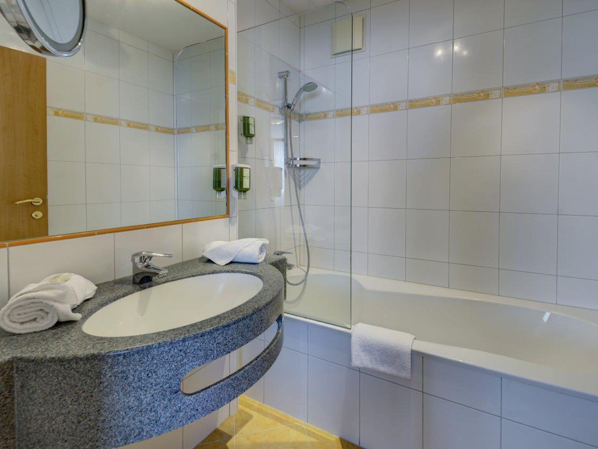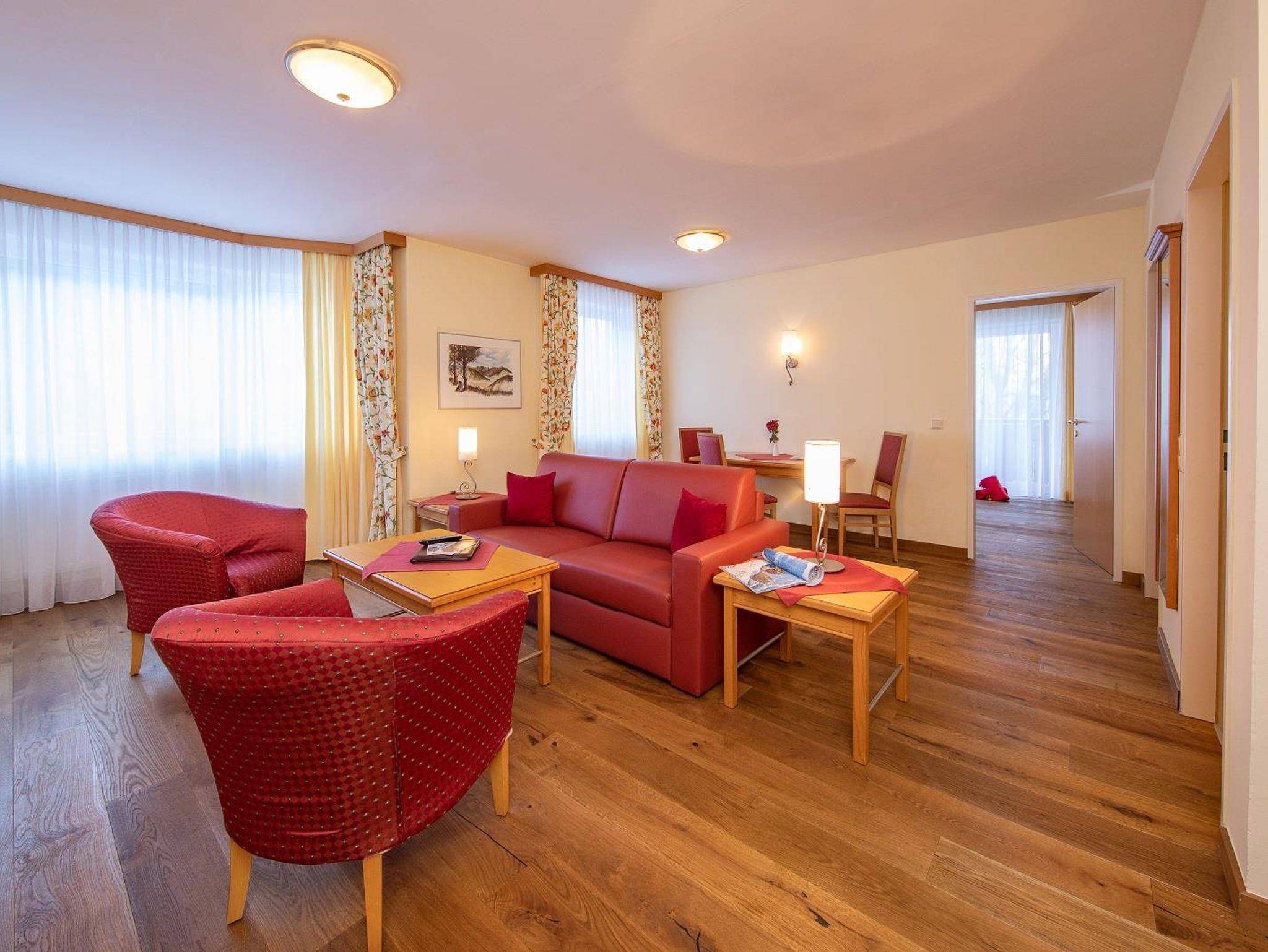 Schöne Suite mit einem Schlafzimmer für 2 Personen, großzügigem Wohnzimmer mit ausziehbarer Doppelcouch, Bad, getrenntem WC, Balkon, 2 Kabel-TV, Radio, Minibar, Föhn, Telefon, Zimmersafe, gratis W-Lan. Gerne liegen Bademäntel für dich bereit.