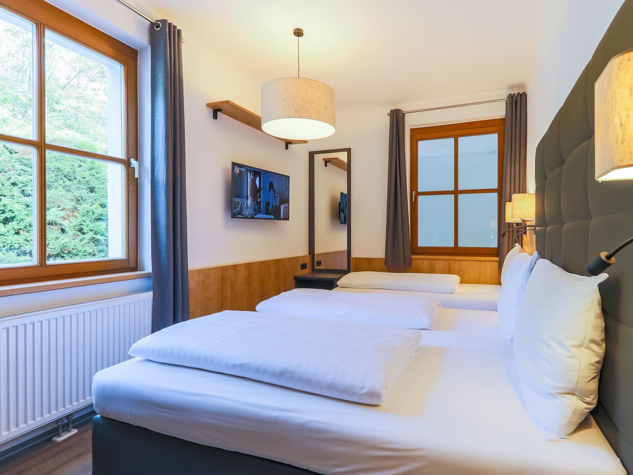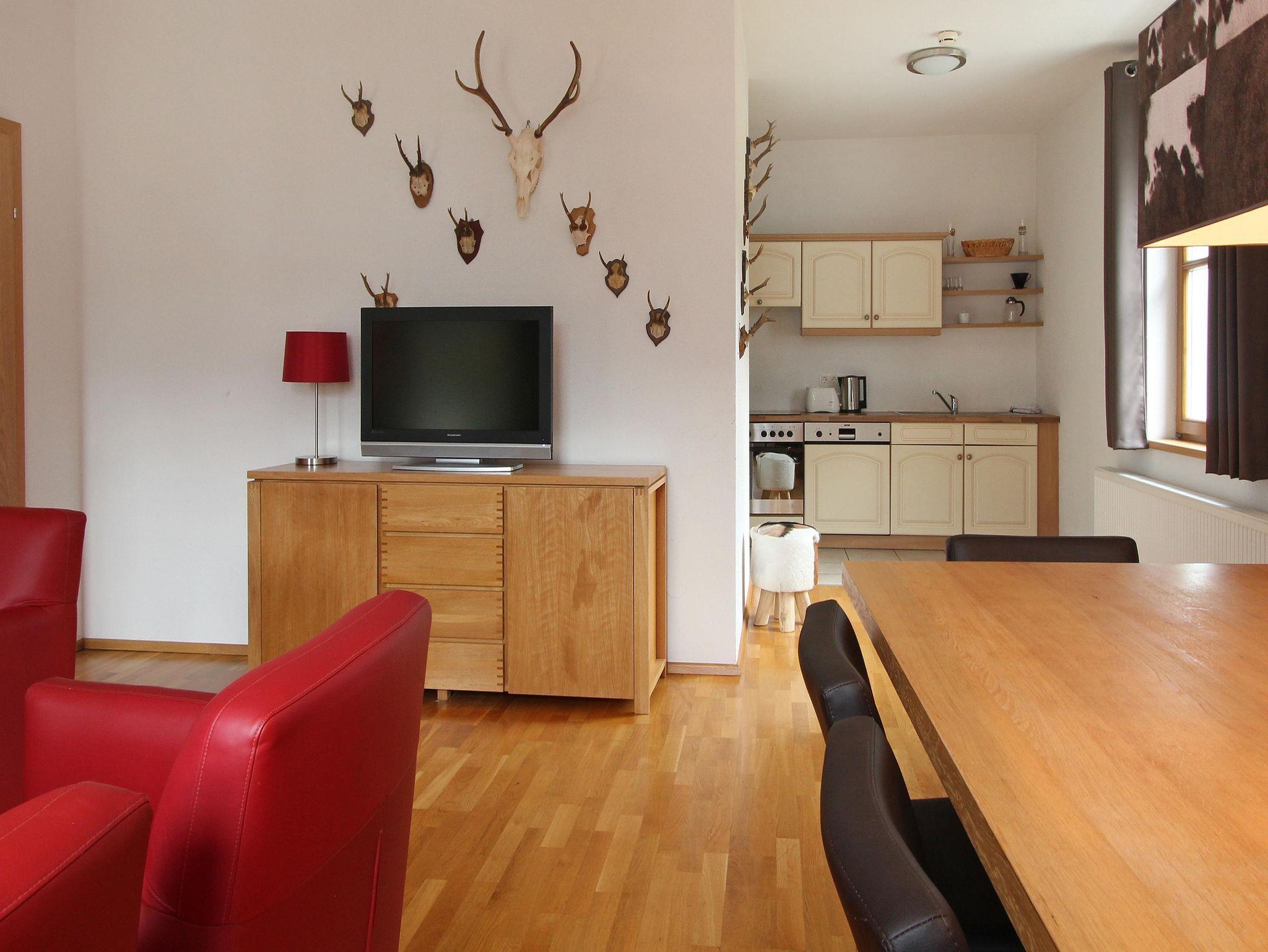 Das Apartment TOP 2 liegt im Erdgeschoss und eignet sich ideal für große Familien und Gruppen. Es verfügt über vier große Schlafzimmer, wovon in zwei Schlafzimmern ein Doppelbett steht. Die anderen Schlafzimmer beinhalten jeweils zwei Einzelbetten. Das Badezimmer ist mit Badewanne und einer Toilette ausgestattet. Das zweite Badezimmer verfügt über eine Dusche. Im Wohnbereich gibt es eine gemütliche Sitzecke, eine Schlafcouch und einen großen Esstisch mit Eckbank, sowie eine offene Küche. Vom Wohnzimmer aus hat man direkten Zugang zur großen Terrasse.