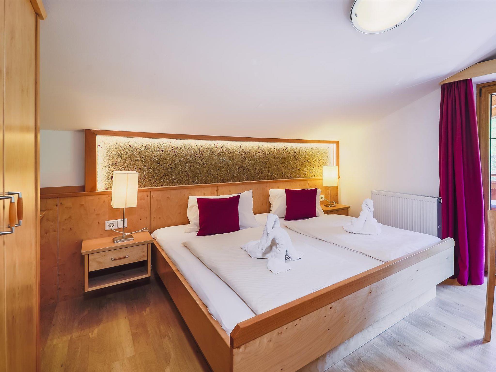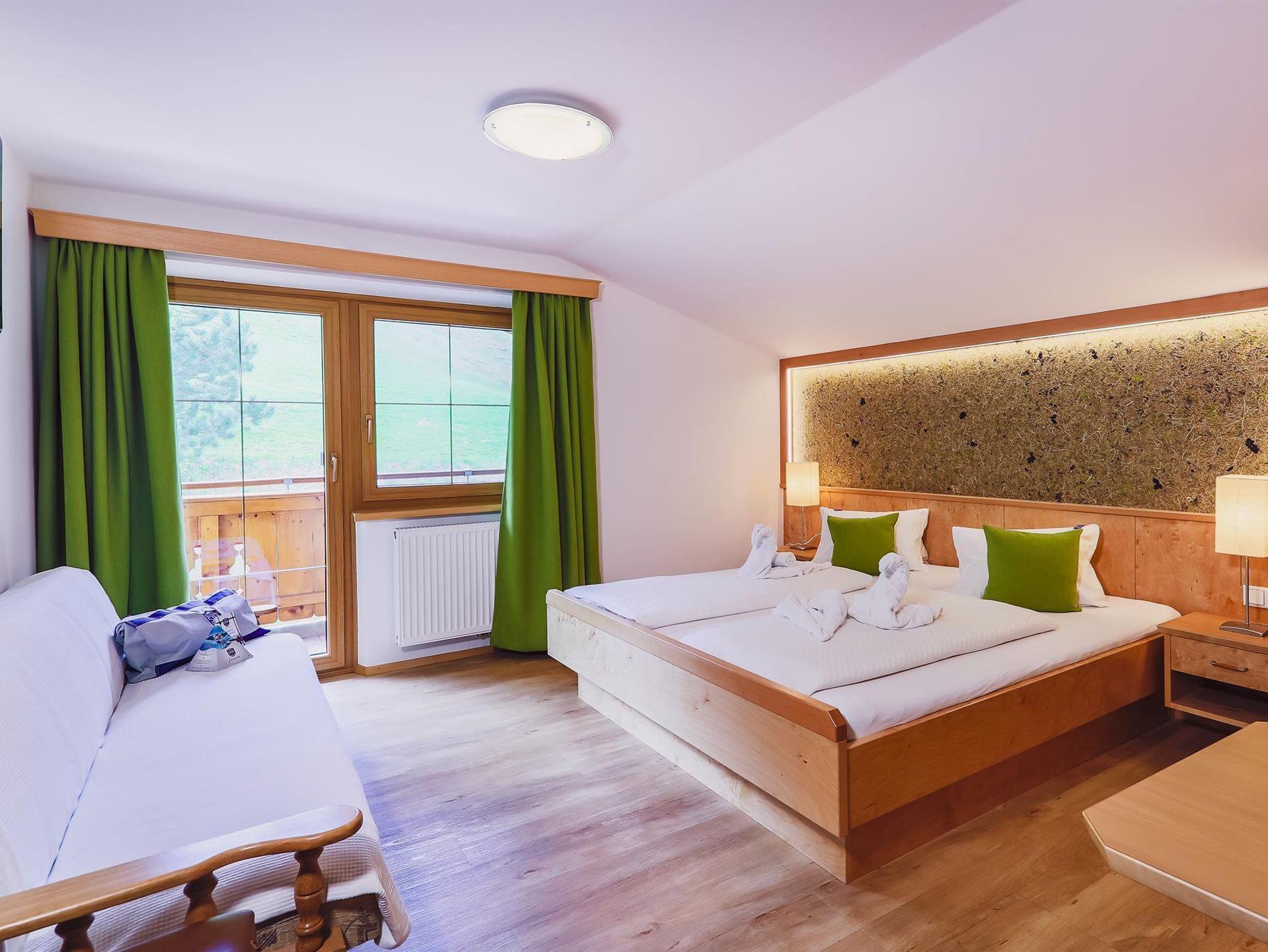 In unseren modern gemütlichen Zimmern aus hellem Massivholz genießt ihr viel Platz, warme Farben und eine wunderbar frische, komfortable Einrichtung mit Dusche/WC, Flat-TV, Wlan, Föhn, Handtuchtrockner und Balkon Richtung Tal und Bergseite. In unseren Familienzimmern mit 2 seperaten Schlafraümen bieten noch Platz für bis zu 2 Kindern.