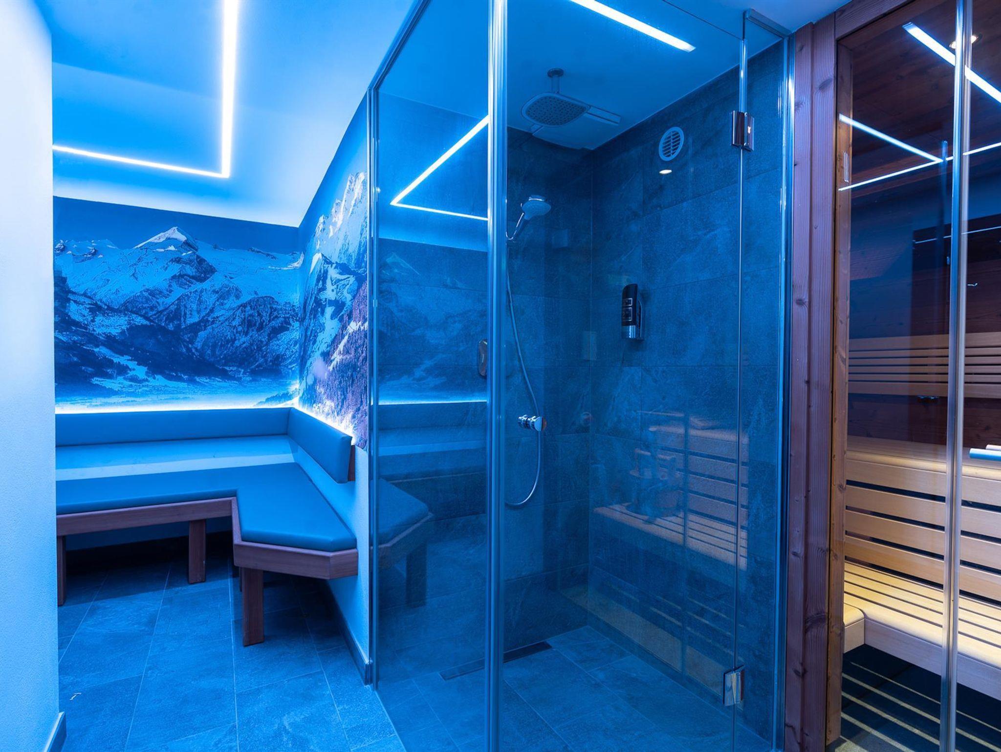 Gegen eine Reservierung und einen Aufpreis von € 12 pro Person kann der hauseigene, private Wellnessbereich mit Sauna, Soft-Dampfbad sowie Relaxzone und Dusche genutzt werden.