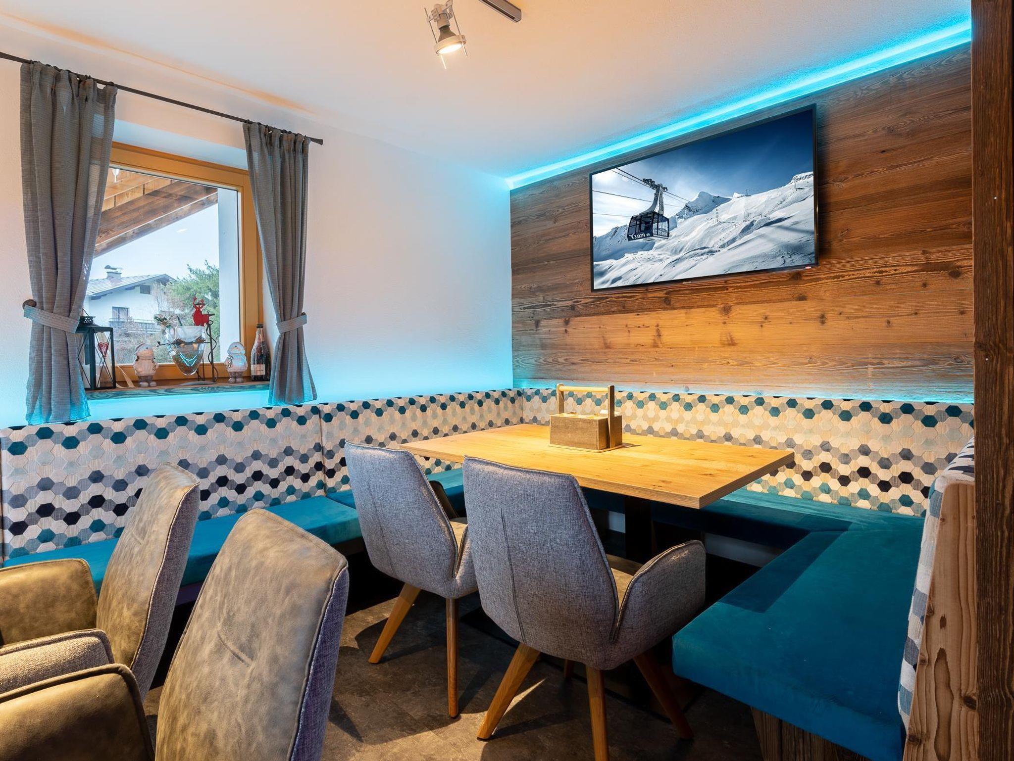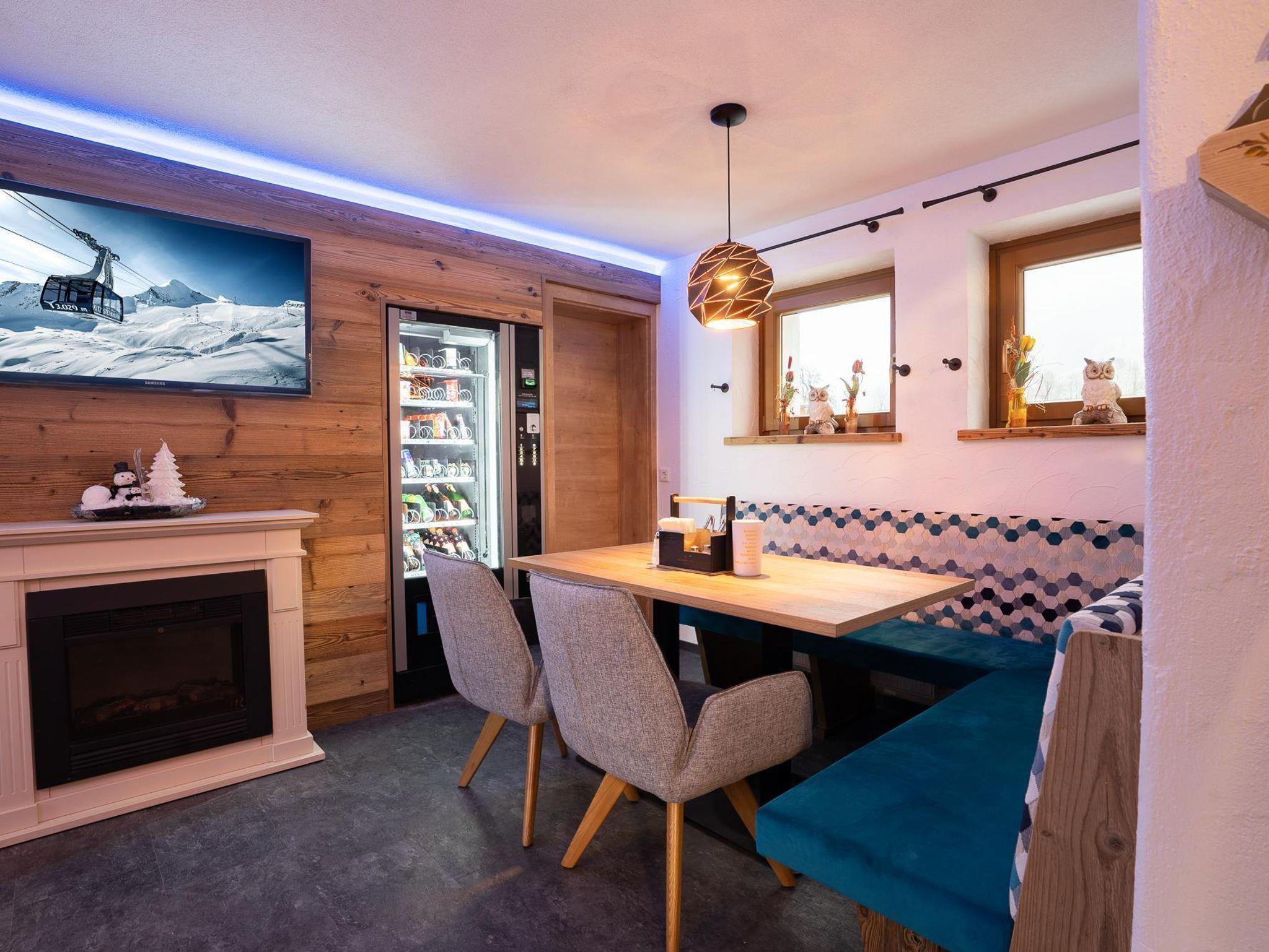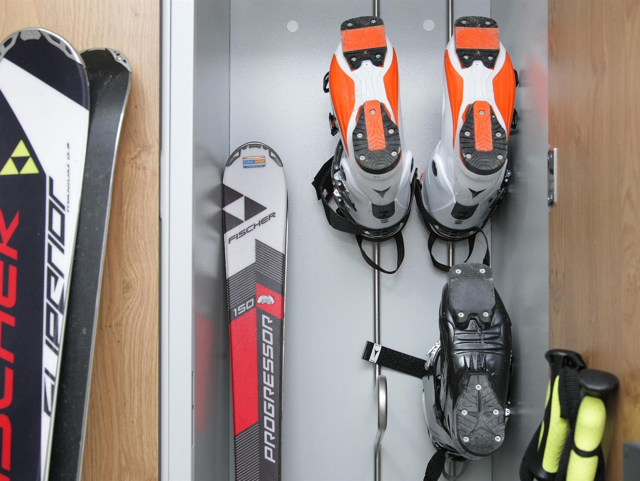 Jedes Zimmer verfügt im Skikeller über einen absperrbaren Skischrank und beheizten Skischuhtrockner. Weiteres befindet sich im Skiraum eine Waschmaschine sowie ein Wäschetrockner der gegen Gebühr benutzt werden kann. Bei Bedarf kann an der Rezeption auch ein Bügeleisen/-brett ausgeliehen werden.