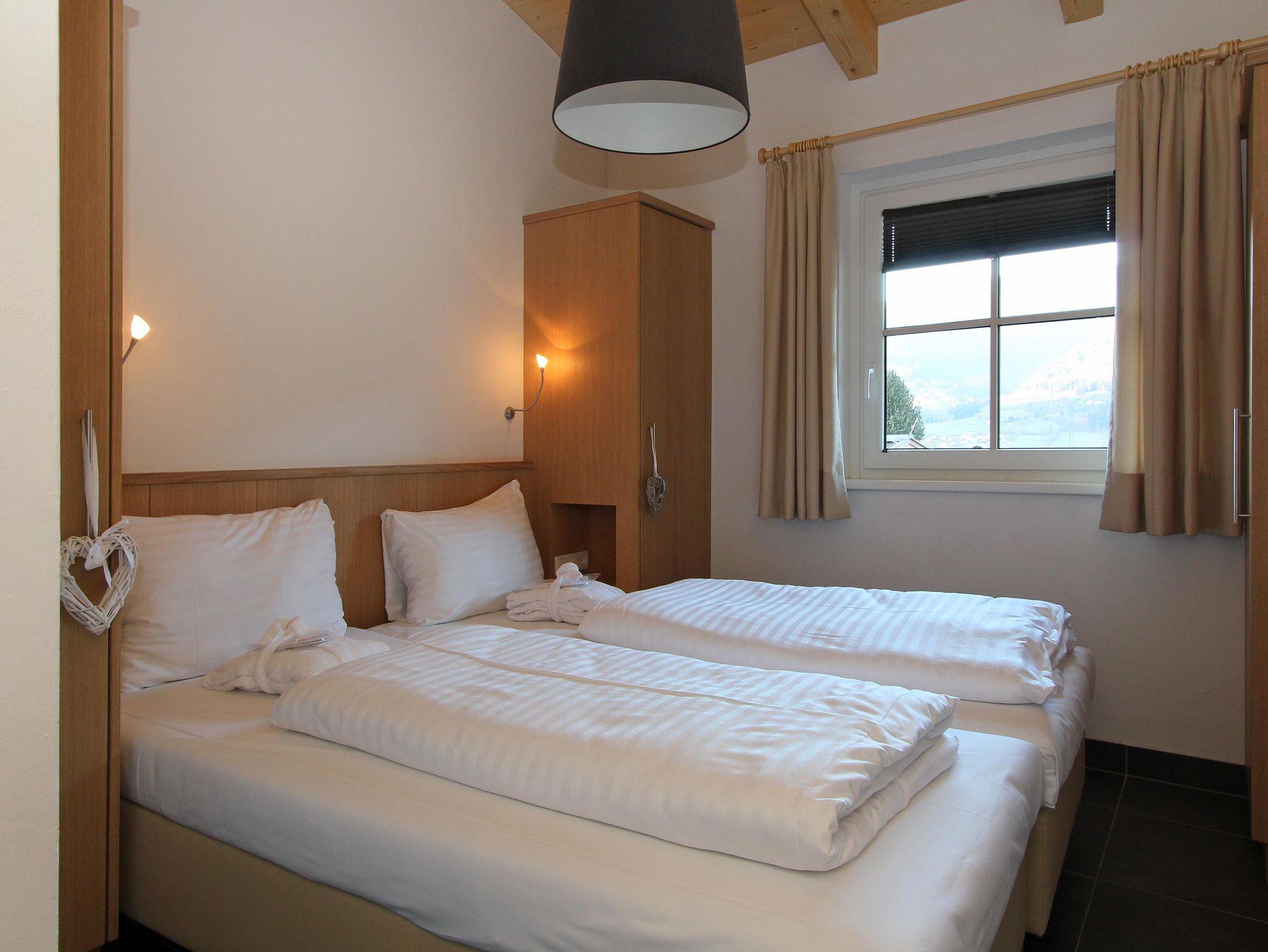 Das Penthouse C28 liegt im obersten Stock und kombiniert den alpinen Stil gekonnt mit modernem Design. Es besteht aus drei schönen Schlafzimmern mit jeweils einem Doppelbett und zwei Badezimmern, wovon eines mit dem Hauptschlafzimmer verbunden ist. Beide Badezimmer sind mit einer doppelten Dusche ausgestattet. Das Wohnzimmer ist sehr großzügig konzipiert mit einem großen Esstisch und einer offenen Design-Küche. In der Sitzecke lässt es sich am Kamin gemütlich entspannen. Vom Wohnzimmer aus gelangt man direkt zum großen Balkon mit toller Aussicht.