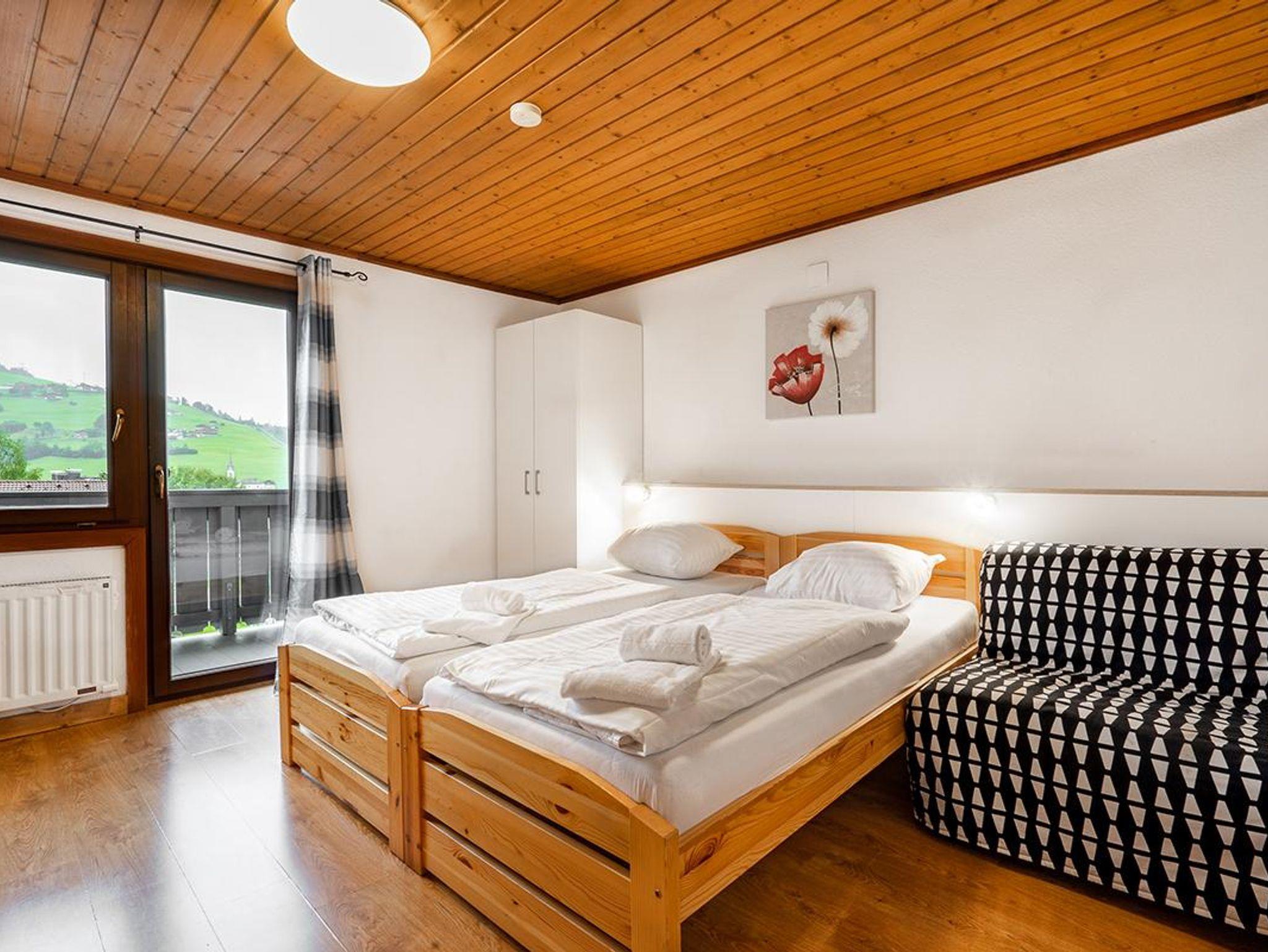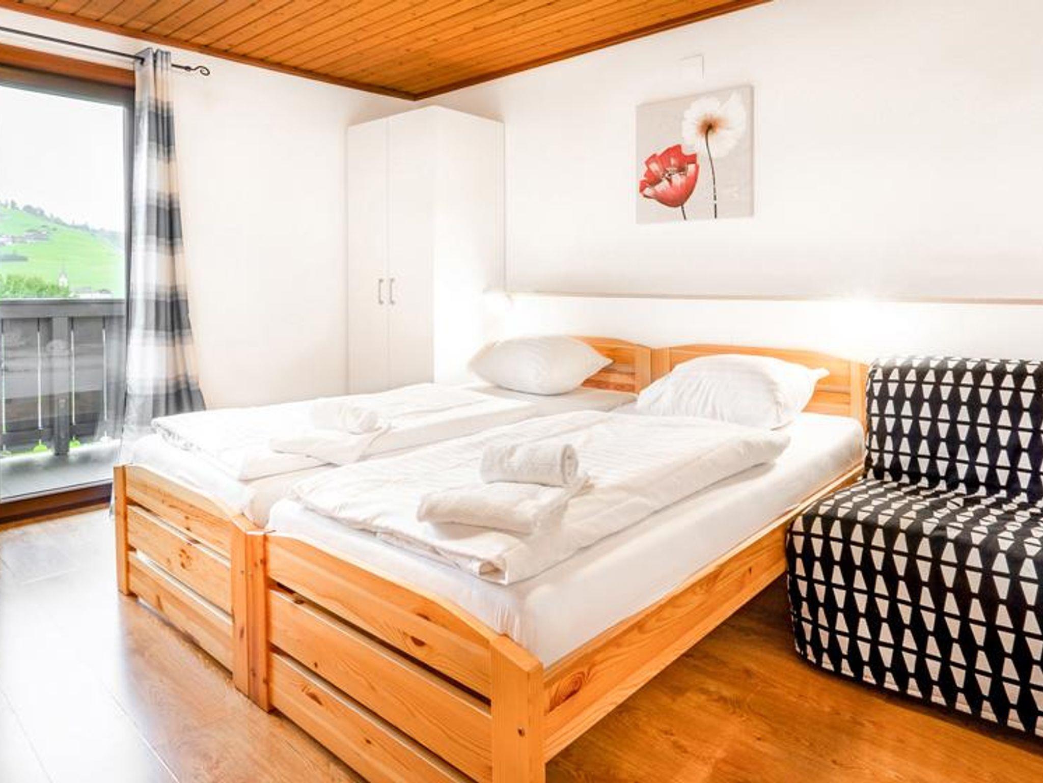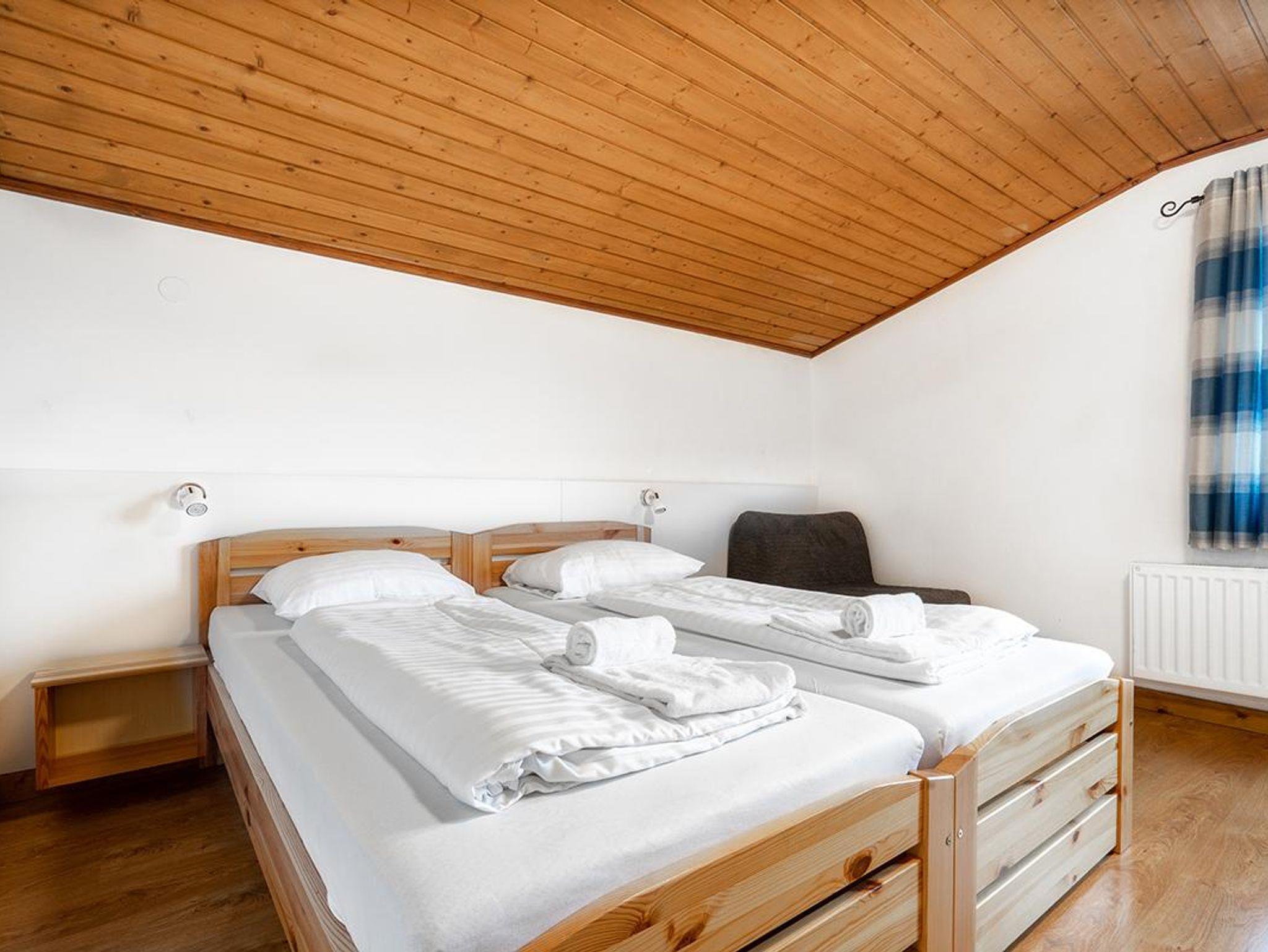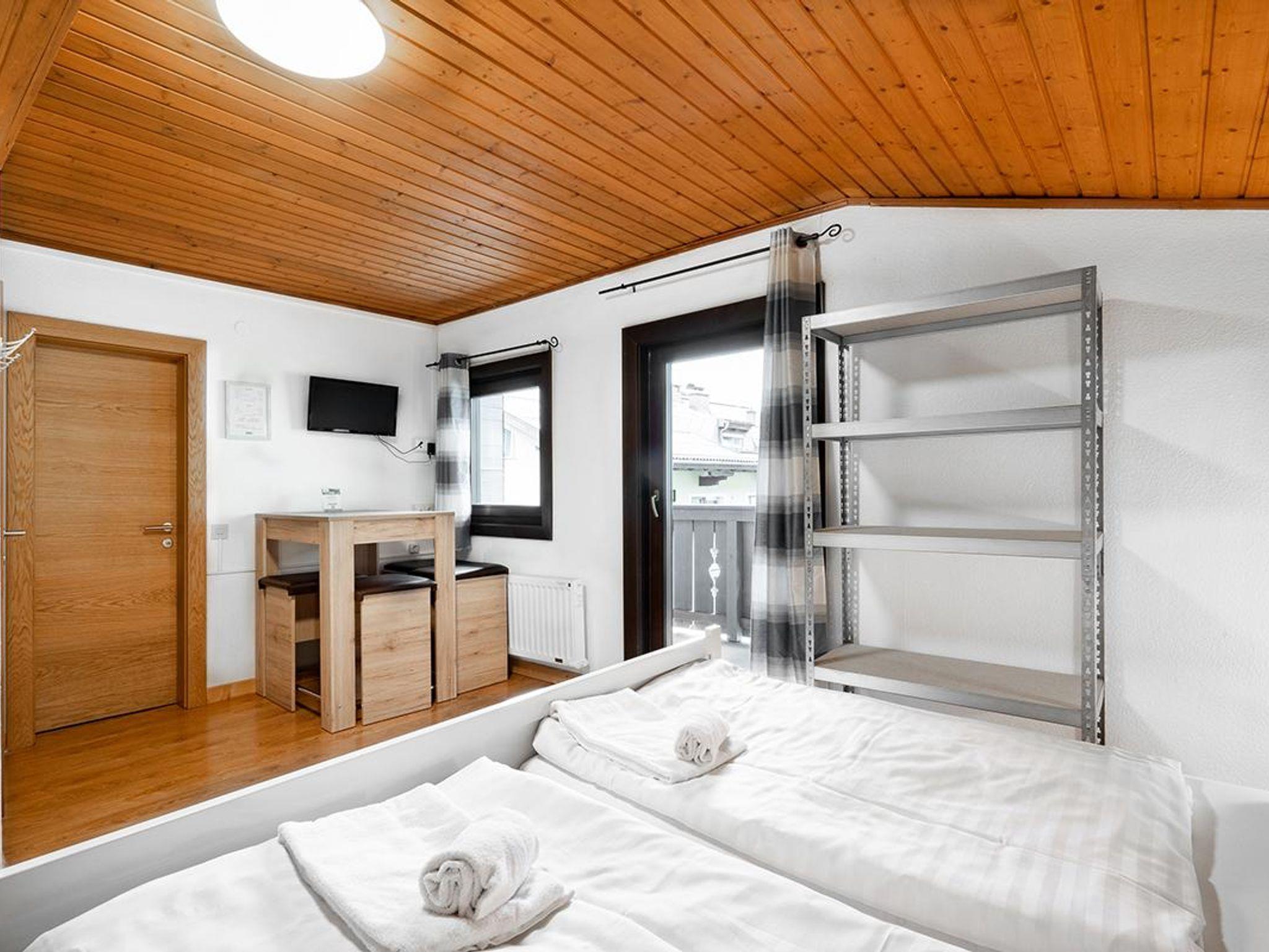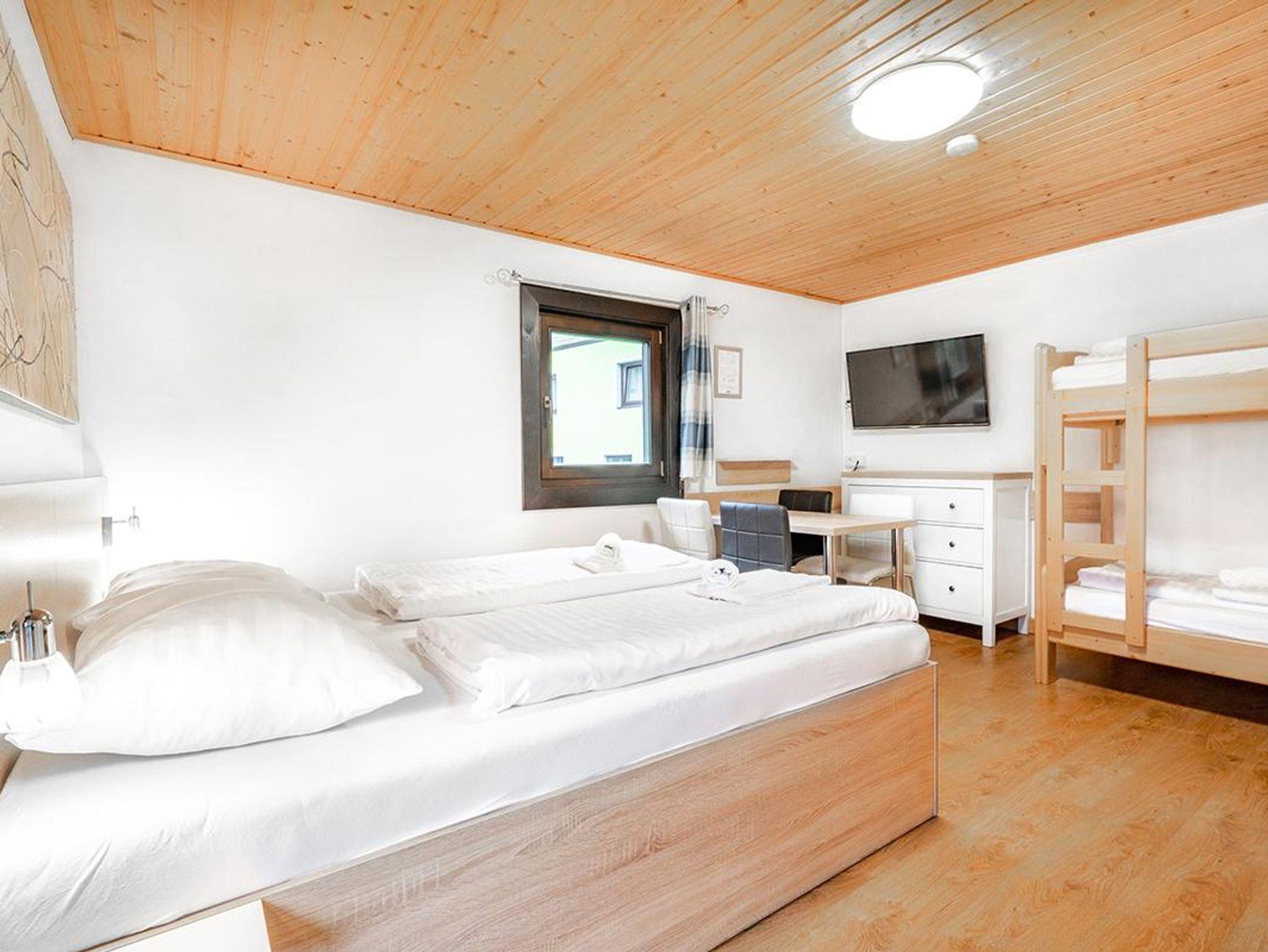 Das Familienzimmer ist ausgestattet mit einem Doppelbett sowie einem Etagenbett für 2 Personen. Es verfügt über ein Badzimmer mit DU, WC sowie HD TV und freies WLAN.
