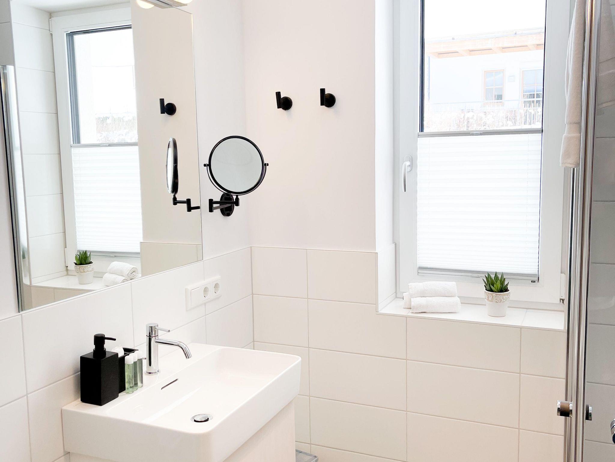1 Schlafzimmer mit Doppelbett und 1 Einzelbett, 1 Wohnzimmer mit Ausziehcouch für 2 Personen; Bad mit Dusche, WC separat, Fön, Kosmetikspiegel; topmoderne Küche mit Kaffeemaschine, Geschirrspüler, Herd, Backofen; großer Ess-Wohnbereich mit Smart-TV