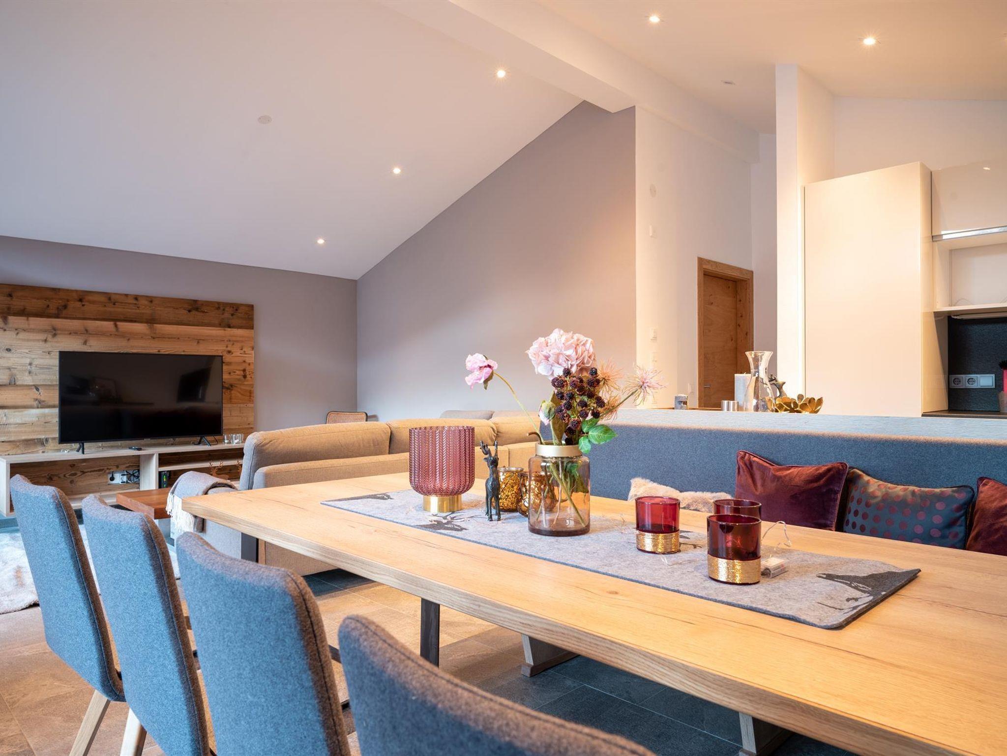 Auf 250m² finden sich 4 Schlafzimmer, insgesamt 3 Badezimmer, sowie eine großer Wohnbereich mit angrenzender Terrasse, die Sommer wie Winter zum Verweilen einlädt. Im Elternzimmer, welches mit gemütlichen Holz eingerichtet ist, befindet sich je ein großes Kingsize-Doppelbett. Das Kinderzimmer ist mit zwei Einzelbetten ausgestattet. Ebenerdig gibt es direkten Zugang zum Garten, mit Grillstelle und Sitzgelegenheit für laue Sommerabende. Das Highlight ist der private Wellnessbereich mit Sauna und einem weiteren Badezimmer!