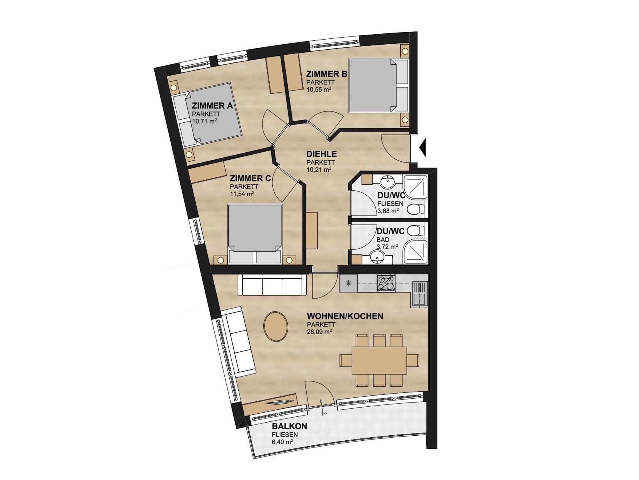 Personen:6 max. 7 Personen Größe/Lage:85 qm, 1. Etage im Ski-Dome I Extras: Balkon mit wunderbarem Ausblick zum Kitzsteinhorn, Geschirrspüler Einrichtung: 3 Schlafzimmer je 2 Personen & 1 Federkern Couch im Wohnzimmer, 2 Bäder mit Dusche und WC.