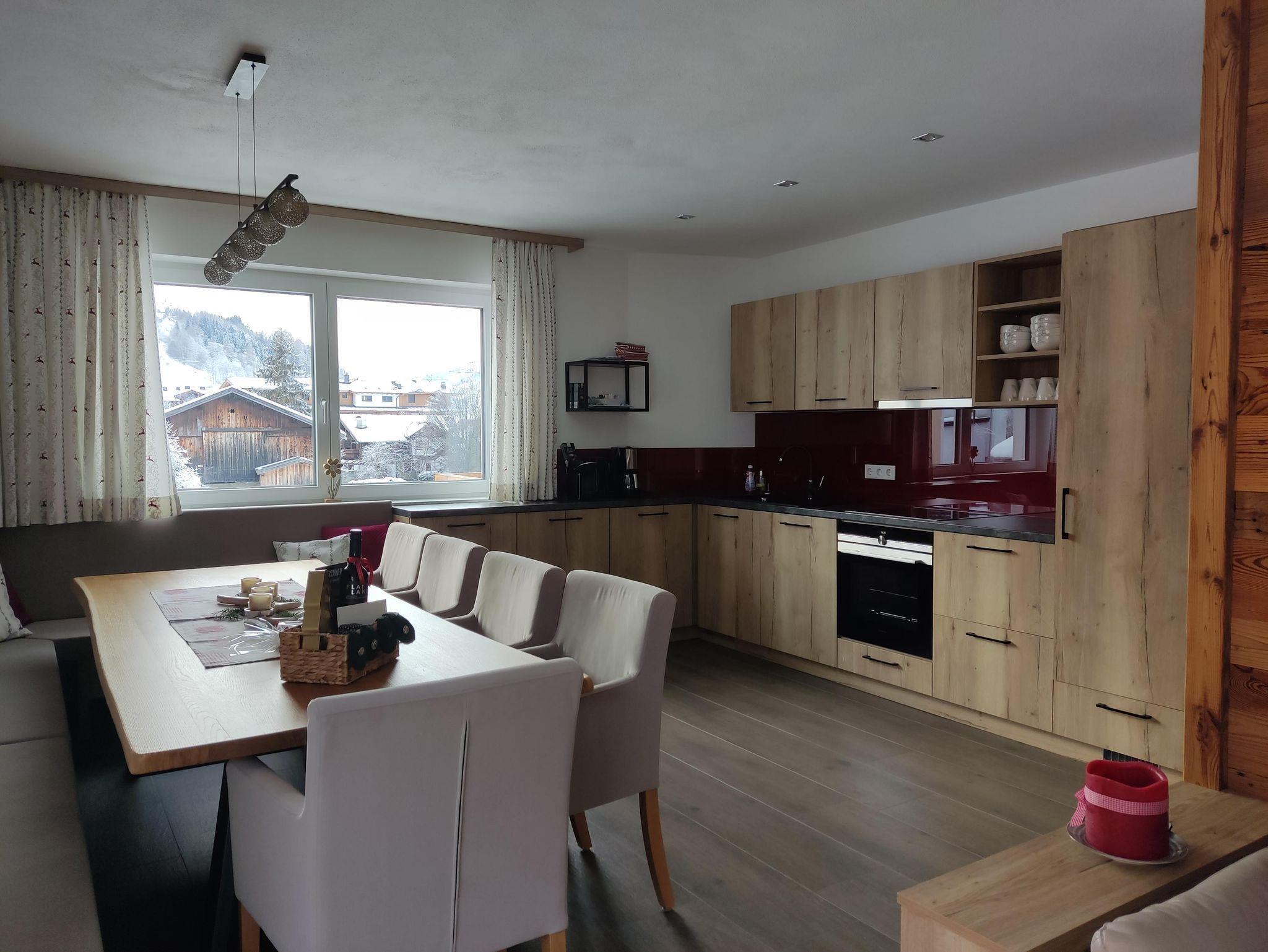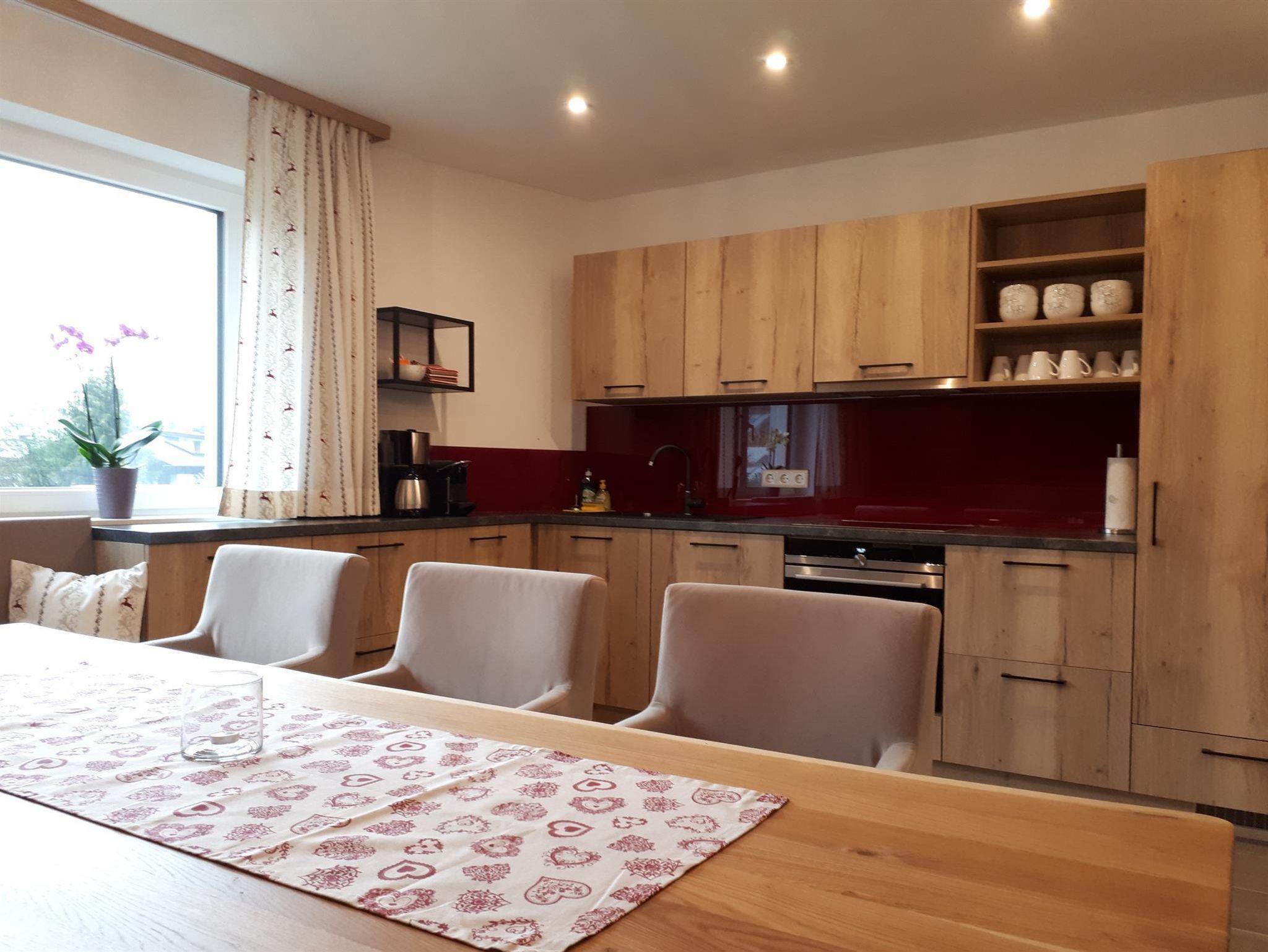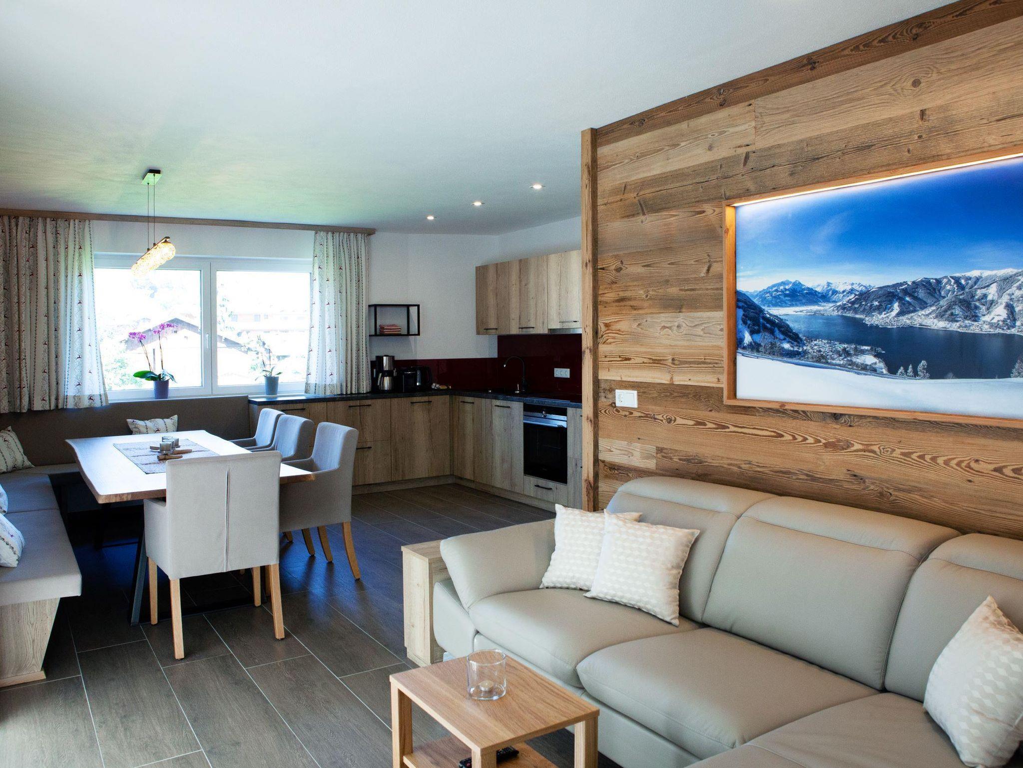 ... zuhause in den Bergen ... Die Panorama Lodge Kitzsteinhorn erstreckt sich über zwei Etagen im 1. Stock und Dachgeschoss unseres Neubaus. Auf ca. 95 m² finden bis zu 8 Personen bequem Platz. Im 1. Stock befindet sich eine geräumige, moderne, voll ausgestattete Wohnküche mit Balkon; im Dachgeschoss 3 Schlafzimmer (2 Doppel-, ein 4-Bettzimmer), 2 Badezimmer sowie ein weiterer Balkon. Die Einrichtung im eleganten, alpenländischen Ambiente strahlt österreichische Gemütlichkeit aus. Wir haben großen Wert auf regionale, natürliche Einrichtungsmaterialien gesetzt, die ein angenehmes Wohnklima erzeugen. Alle Zimmer sind mit Flat-TV ausgestattet. Parkplatz und WiFi, Handtücher und Bettwäsche sind inklusive.