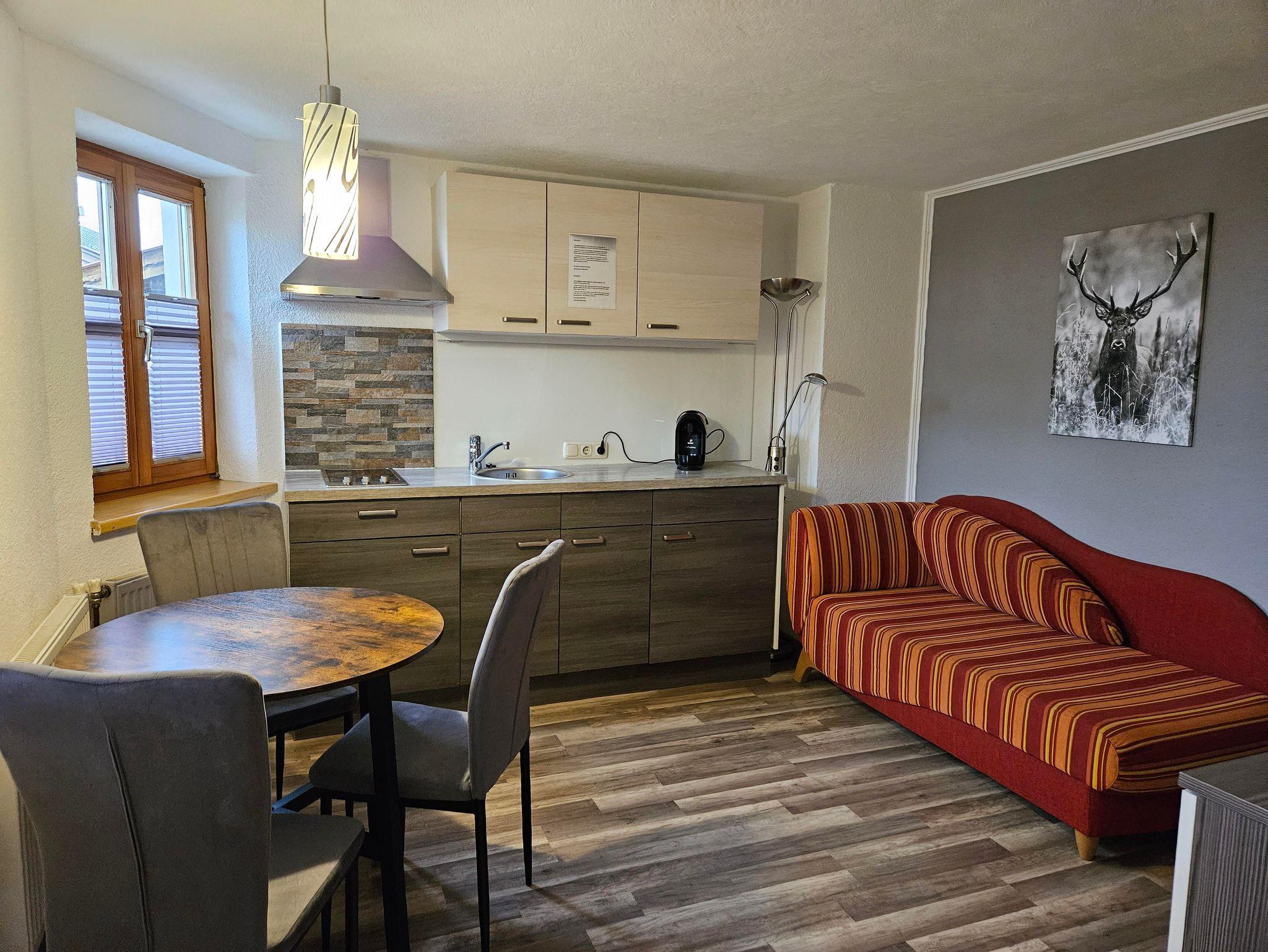 1 Schlafzimmer, 1 Wohn-Schlafraum mit Küchenblock, komplett ausgestattet 2 Platten E-Herd, Dusche, WC, Flat Sreen TV, Radio. Gratis Online-Zugang zum Internet für Laptops in den Appartements