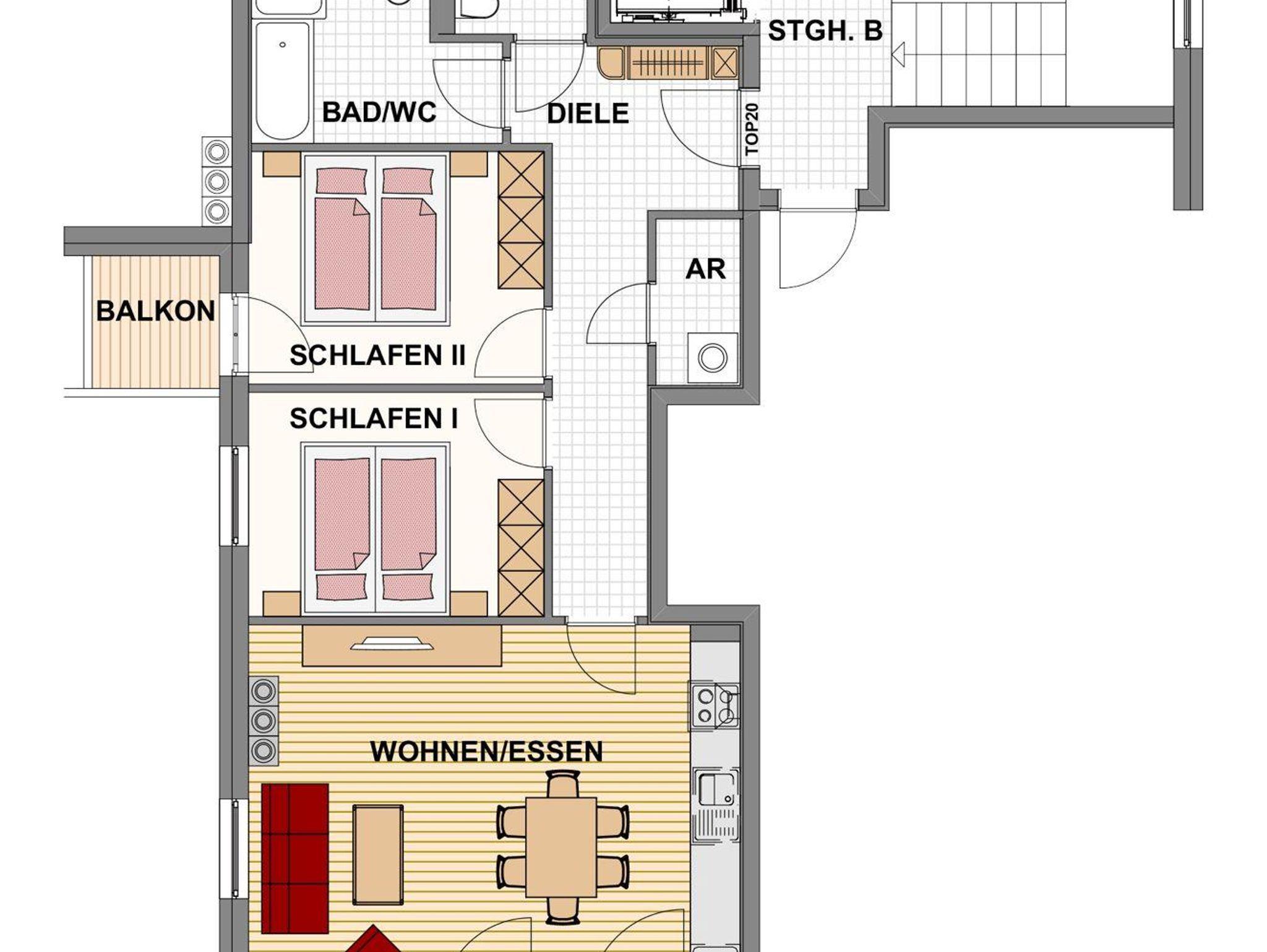 Geschmackvoll eingerichtetes Appartement für 4-6 Personen im 1.Stock, Größe 82m²,