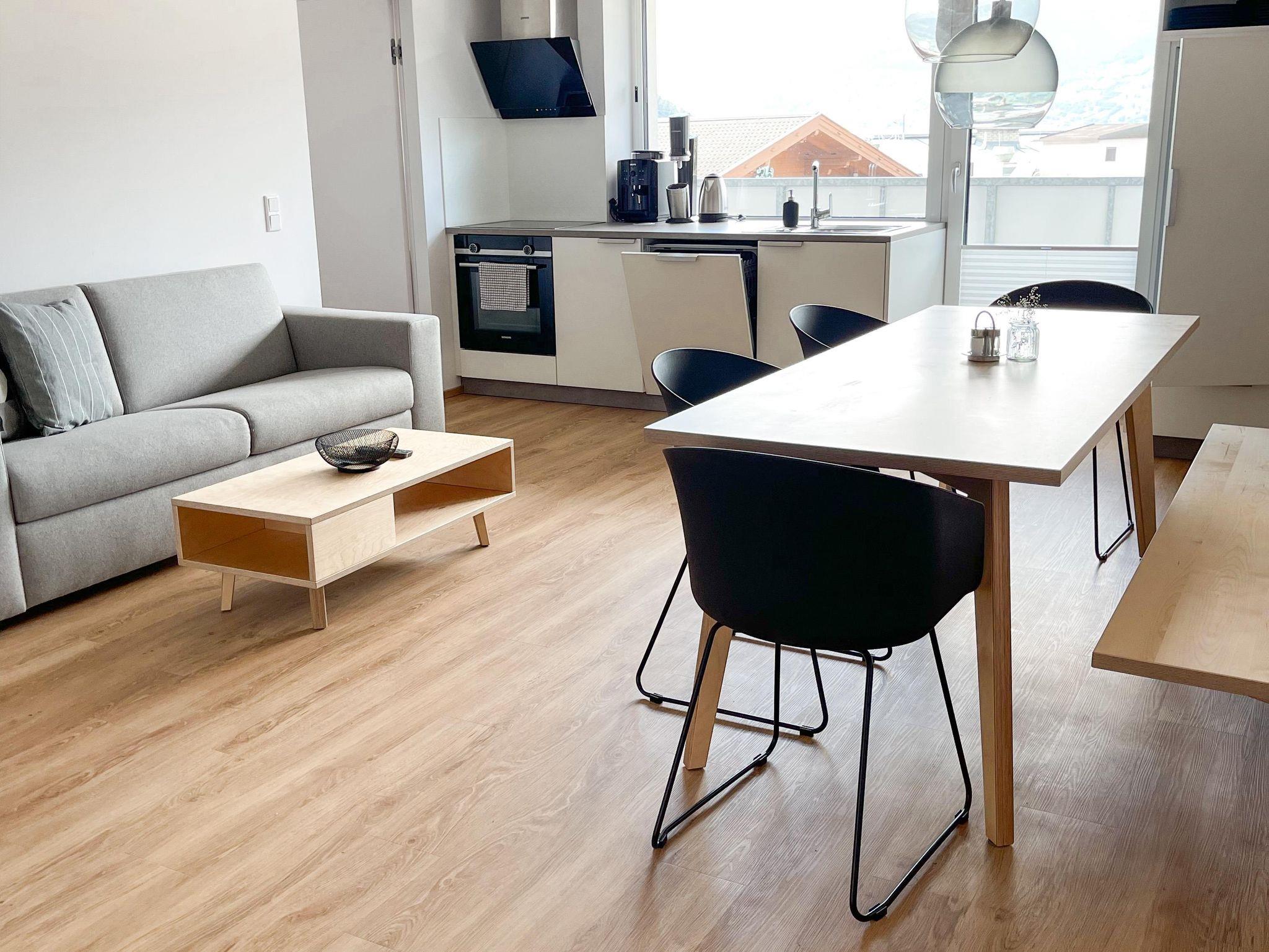 1 Schlafzimmer mit Doppelbett, 1 Schlafzimmer mit Doppelbett und Schlafcouch für 1 Person, 1 Wohnzimmer mit Ausziehcouch für 2 Personen, Bad mit WC / Dusche, Fön, Kosmetikspiegel; voll ausgestattete Küche; großer Ess-Wohnbereich mit Smart-TV