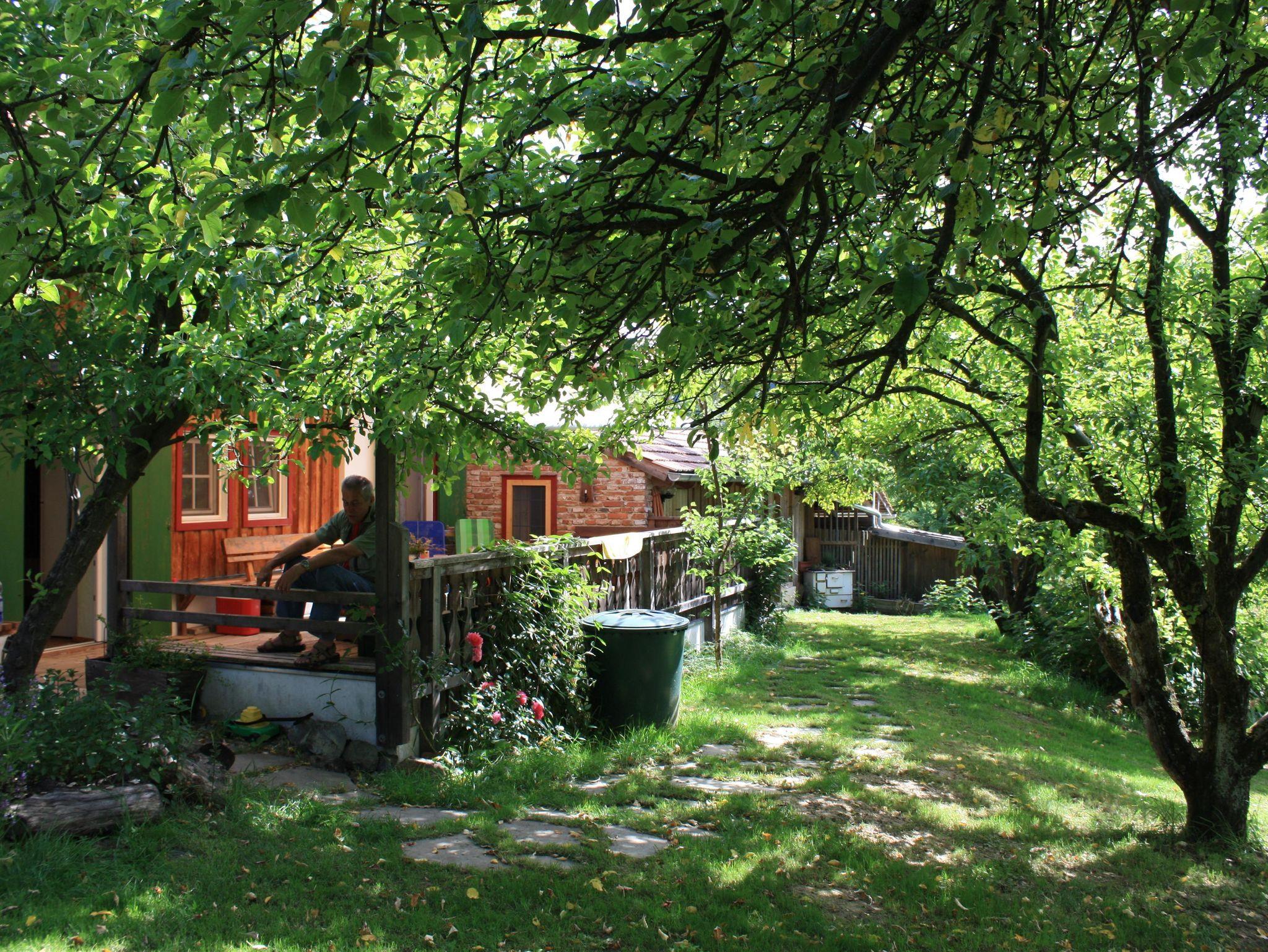 Der angrenzende kleine Wald bietet Entspannung pur beim Waldbaden. Am Waldesrand erfreuen sich Kinder am Trampolin, beim Sandspielen und Schaukeln.
