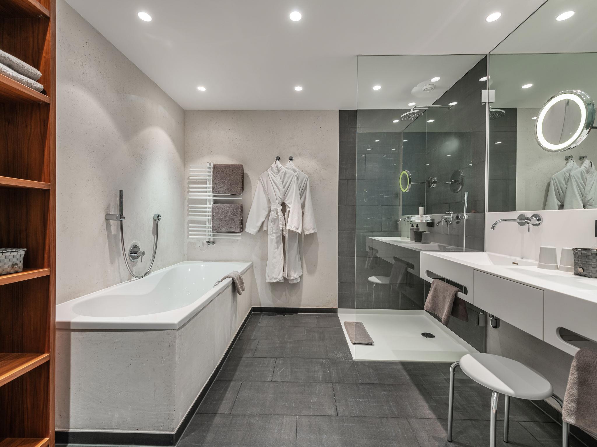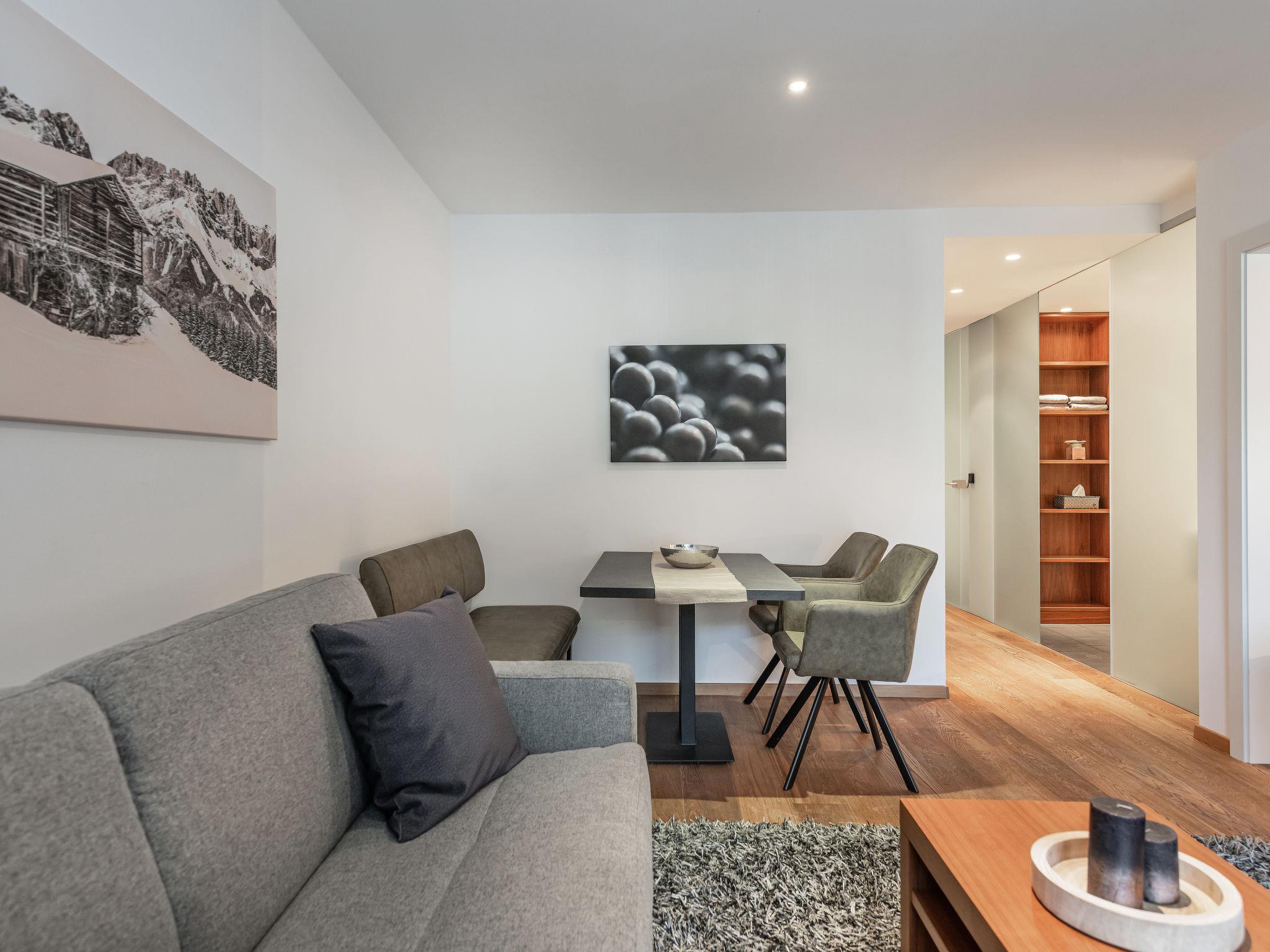 "Premium", 3-room apartment 65 m2. Modern and tasteful furnishings: living/sleeping room with 1 double sofabed, dining nook and satellite TV (flat screen). 1 double bedroom with shower/WC. 1 double bedroom. Open kitchen (oven, 4 ceramic glass hob hotplates, toaster, kettle, microwave, electric coffee machine). Shower/WC. Heating. Balcony or terrace. Terrace furniture. Beautiful view of the mountains. Facilities: hair dryer. Internet (WiFi, free). Please note: non-smokers only. The property is one of a type of property or apartment.
